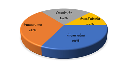 รูปภาพแสดงจำนวนหมู่บ้านในแต่ละตำบลของอำเภอควนโดน