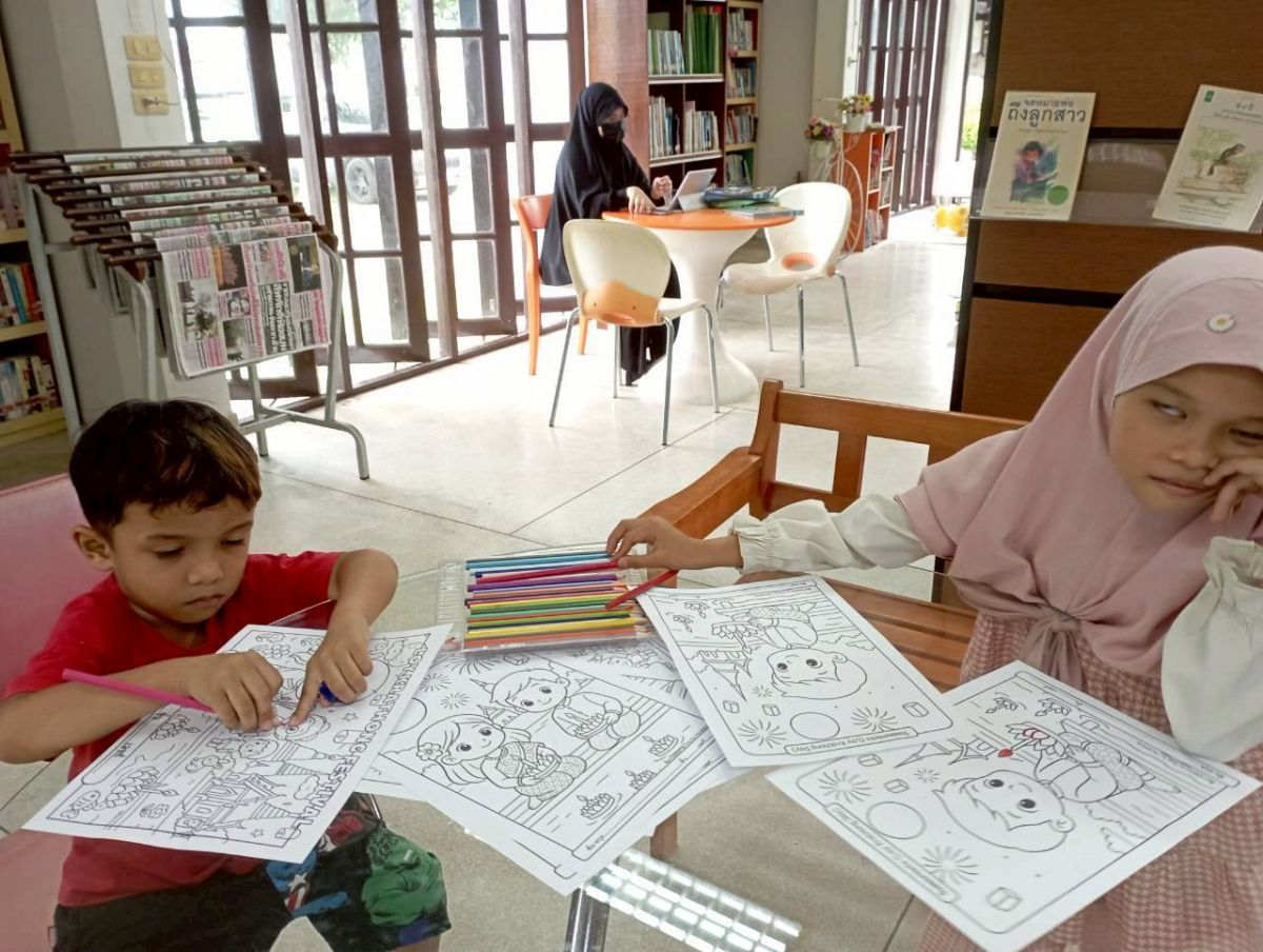 ห้องสมุดประชาชนอำเภอควนโดน จัดกิจกรรมส่งเสริมการอ่านและการเรียนรู้ ระบายสีมีความรู้ เรื่อง วันลอยกระทง และกิจกรรมนิทานหรรษา