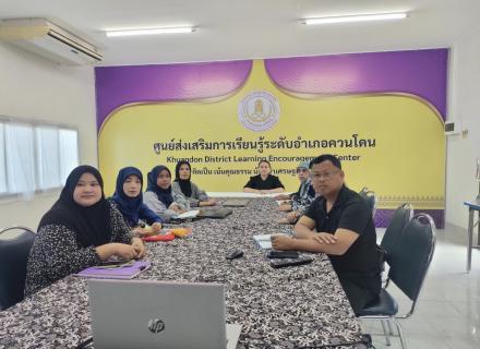 บรรณารักษ์ ห้องสมุดประชาชนอำเภอควนโดน เข้าร่วมประชุมทบทวน การจัดทำแนวทางการดำเนินงานพัฒนาระบบประกันคุณภาพภายในสถานศึกษา