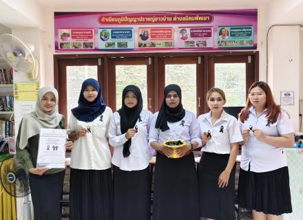 ห้องสมุดประชาชนอำเภอมะนัง นำนักศึกษาเข้าร่วมกิจกรรม ร้อยดวงใจ ทำริบบิ้นดำ ถวายอาลัย