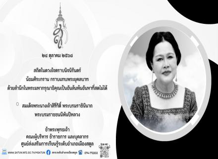 ๒๔ ตุลาคม ๒๕๖๘ สถิตในดวงใจตราบนิจนิรันดร์ น้อมศิระกราน กราบแทบพระยุคลบาท ด้วยสำนึกในพระมหากรุณาธิคุณเป็นอันล้นพ้นอันหาที่สดไม่ได้ สมเด็จพระนางเจ้าสิริกิติ์ พระบรมราชินีนาถ พระบรมราชชนนีพันปีหลวง ข้าพระพุทธเจ้า คณะผู้บริหาร ข้าราชการ และบุคลากร ศูนย์ส่ง