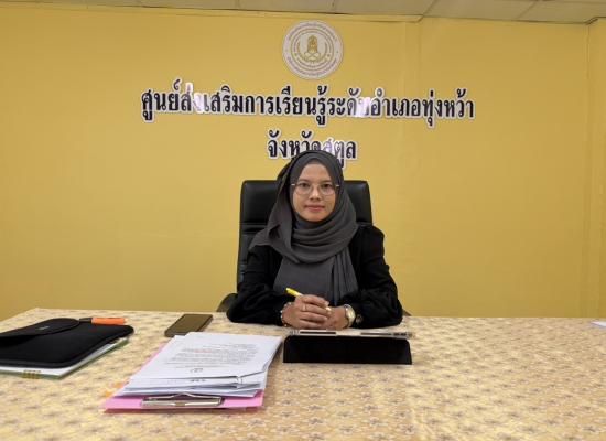 นางวาสนา อนุสรณ์ประเสริฐ ผู้อำนวยการสำนักงาน ส่งเสริมการเรียนรู้จังหวัดสตูล นางสาวบุปผาชาติ เรืองกูล รองผู้อำนวยการสำนักงาน ส่งเสริมการเรียนรู้จังหวัดสตูล