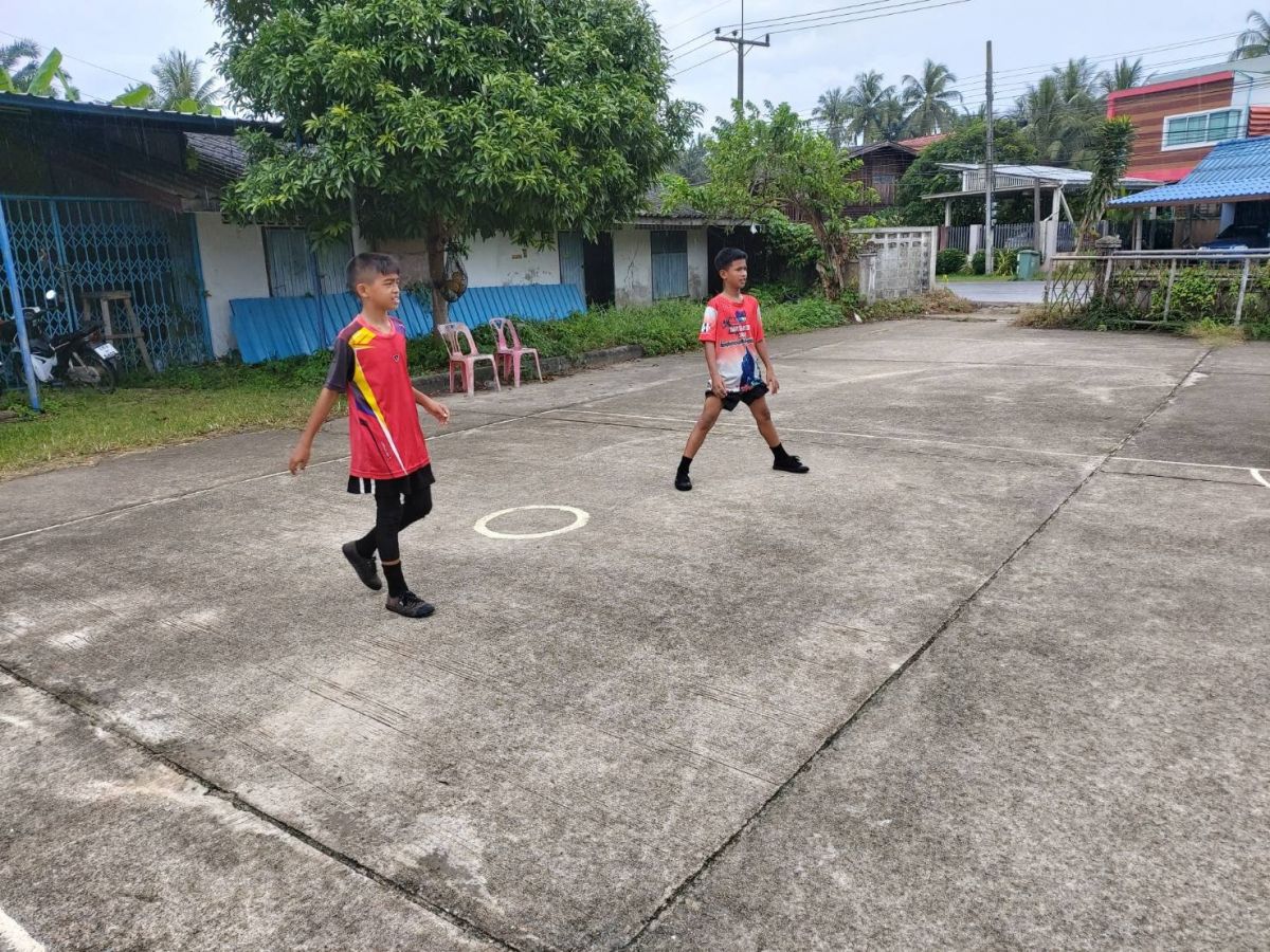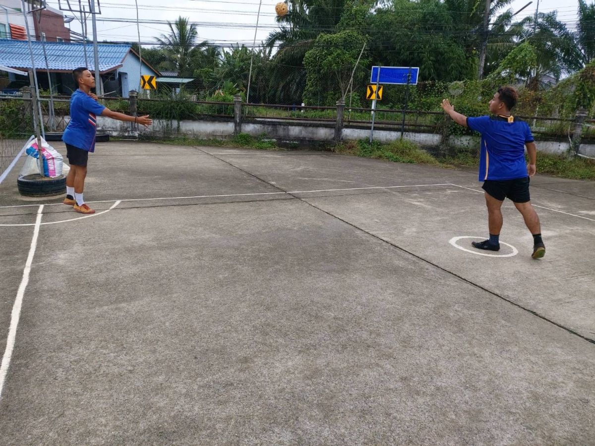 นายมะณี ศรีมุณี ครู อาสาสมัครฯ จัดเตรียมความพร้อมและฝึกซ้อมนักกีฬาเซปักตะกร้อ ณ สนามองค์การบริหารส่วนตำบลแหลมสน อำเภอละงู จังหวัดสตูล