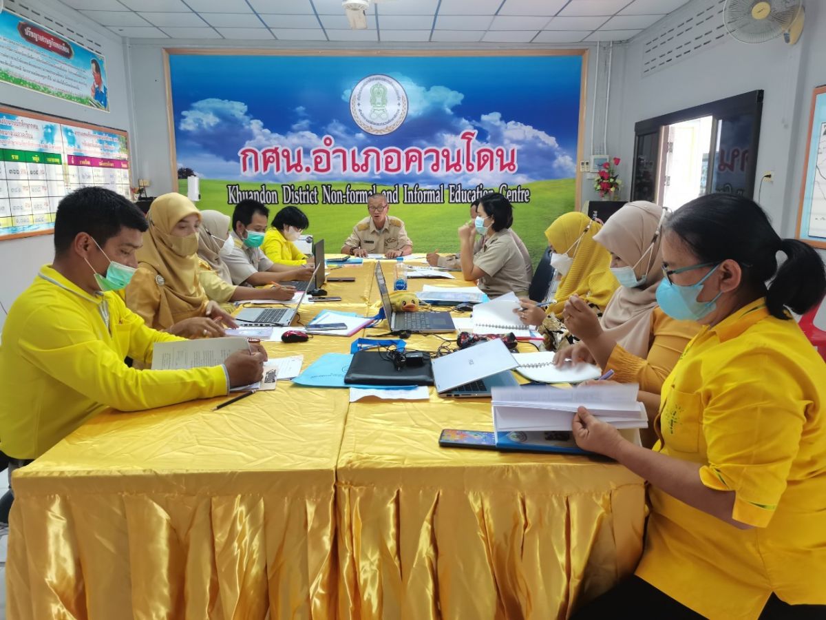 นางสาวสุนีย์ ไมมะหาด ครู กศน.ตำบลควนสตอ และนางรัตติยา ทรุพงษ์ ครูอาสาสมัคร กศน.ตำบลควนสตอ เข้าร่วมประชุมบุคลากรประจำสัปดาห์เพื่อรายการผลการดำเนินการจัดกิจกรรมการงานศึกษาต่อเนื่องไตรมาส 3 และร่วมกันวางแผนขับเคลื่อนการจัดกิจกรรมงาน กศน. ประจำปีงบประมาณ 2565 ไตรมาส 4 ณ ห้องประชุม กศน.อำเภอควนโดน จังหวัดสตูล โดยมีนายคณาธิป บุญญารัตน์ รองผู้อำนวยการสำนักงาน กศน.จังหวัดสตูล รักษาการในตำแหน่งผู้อำนวยการ กศน.อำเภอควนโดน จังหวัดสตูล เป็นประธานและดำเนินการประชุม
