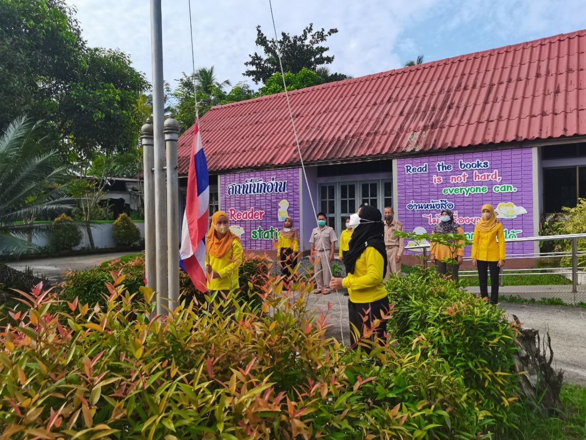 นางสาวสุนีย์ ไมมะหาด ครู กศน.ตำบลควนสตอ พร้อมด้วยบุคลากรในสถานศึกษา ได้รับมอบหมายจาก นายคณาธิป บุญญารัตน์ รองผู้อำนวยการสำนักงาน กศน.จังหวัดสตูล รักษาการในตำแหน่งผู้อำนวยการ กศน.อำเภอควนโดน จังหวัดสตูล ดำเนินกิจกรรมเข้าแถวเคารพธงชาติ ทำกิจกรรมทางศาสนา เพื่อแสดงความจงรักภักดีต่อสถาบันชาติ ศาสนา และพระมหากษัตริย์ โดยเป็นไปตามมาตรการป้องกันการแพร่ระบาดของโรคติดเชื้อไวรัสโคโรนา 2019 หรือ (COVID-19) ณ บริเวณหน้าเสาธง กศน.อำเภอควนโดน จังหวัดสตูล