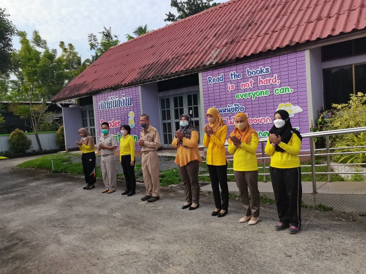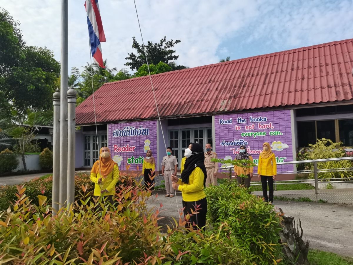 นางสาวฮาบีบะห์ เจ๊ะสมอเจ๊ะ ครู กศน.ตำบลควนโดน พร้อมด้วยบุคลากรในสถานศึกษา ได้รับมอบหมายจาก นายคณาธิป บุญญารัตน์ รองผู้อำนวยการสำนักงาน กศน.จังหวัดสตูล รักษาการในตำแหน่งผู้อำนวยการ กศน.อำเภอควนโดน จังหวัดสตูล ดำเนินกิจกรรมเข้าแถวเคารพธงชาติ ทำกิจกรรมทางศาสนา เพื่อแสดงความจงรักภักดีต่อสถาบันชาติ ศาสนา และพระมหากษัตริย์ โดยเป็นไปตามมาตรการป้องกันการแพร่ระบาดของโรคติดเชื้อไวรัสโคโรนา 2019 หรือ (COVID-19) ณ บริเวณหน้าเสาธง กศน.อำเภอควนโดน จังหวัดสตูล