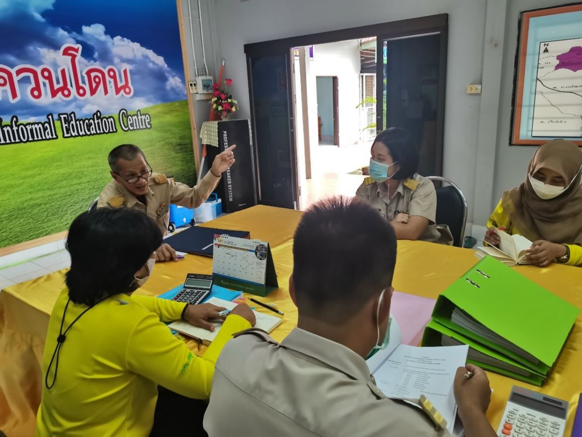 นายคณาธิป บุญญารัตน์ รองผู้อำนวยการสำนักงาน กศน.จังหวัดสตูล รักษาการในตำแหน่งผู้อำนวยการ กศน.อำเภอควนโดน จังหวัดสตูล ประชุมบุคลากรในสถานศึกษา กศน.อำเภอควนโดน ติดตามการเตรียมความพร้อมนักกีฬาแต่ละประเภท ที่จะเข้าร่วมแข็งขัน “กีฬา กศน.ชายแดนใต้เกมส์ จังหวัดสตูล ประจำปี พ.ศ. 2565” ในวันที่ 9 สิงหาคม 2565 ณ สนามกีฬาเทศบาลตำบลฉลุง อำเภอเมือง จังหวัดสตูล โดยการประชุมเป็นไปตามมาตรการป้องกันการแพร่ระบาดของโรคติดเชื้อไวรัสโคโรนา 2019 หรือ (COVID-19) ณ ห้องประชุม กศน..อำเภอควนโดน จังหวัดสตูล
