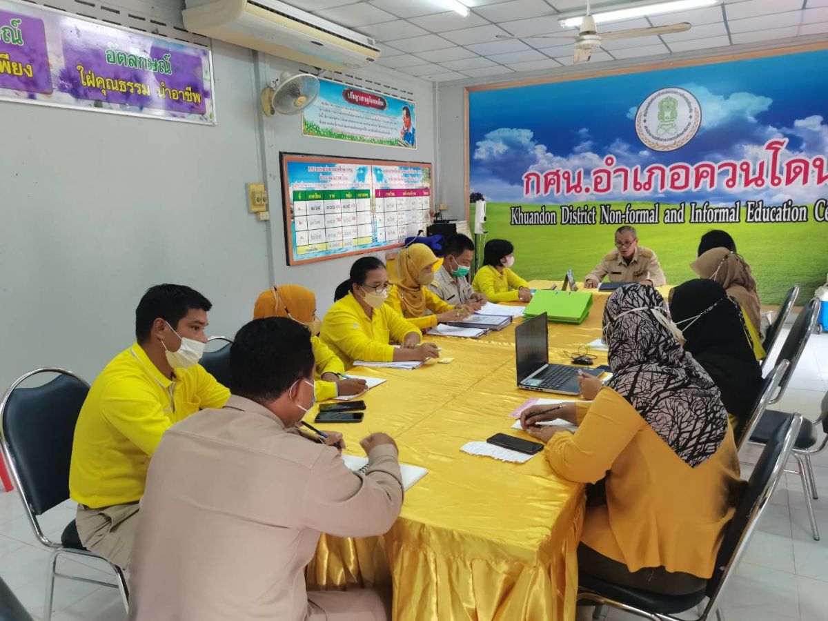 นางวนิดา รักเมือง ครู กศน.ตำบลวังประจัน เข้าร่วมประชุมบุคลากรประจำสัปดาห์ เพื่อรายการผลการการเตรียมความพร้อมนักกีฬาแต่ละประเภท ที่จะเข้าร่วมแข็งขัน “กีฬา กศน.ชายแดนใต้เกมส์ จังหวัดสตูล ประจำปี พ.ศ. 2565” ณ ห้องประชุม กศน.อำเภอควนโดน จังหวัดสตูล โดยมีนายคณาธิป บุญญารัตน์ รองผู้อำนวยการสำนักงาน กศน.จังหวัดสตูล รักษาการในตำแหน่งผู้อำนวยการ กศน.อำเภอควนโดน จังหวัดสตูล เป็นประธานและดำเนินการประชุม