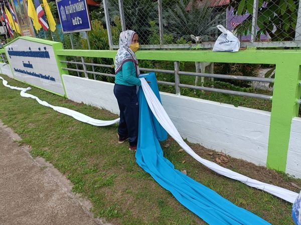 นางสาวฮาบีบะห์ เจ๊ะสมอเจ๊ะ ครู กศน.ตำบลควนโดน และนายอนันต์ ลัสมาน ครูอาสาสมัครฯ กศน.ตำบลควนโดน พร้อมด้วยบุคลากร กศน.อำเภอควนโดน ได้รับมอบหมายจาก นายคณาธิป บุญญารัตน์ รองผู้อำนวยการ สำนักงาน กศน.จังหวัดสตูล รักษาการในตำแหน่งผู้อำนวยการ กศน.อำเภอควนโดน จัดเตรียมสถานที่เฉลิมพระเกียรติ พระพันปีหลวง เนื่องในโอกาสมหามงคลเฉลิมพระชนมพรรษา 90 พรรษา 12 สิงหาคม 2565 ณ กศน.อำเภอควนโดน จังหวัดสตูล