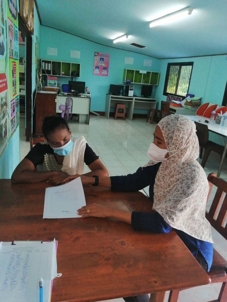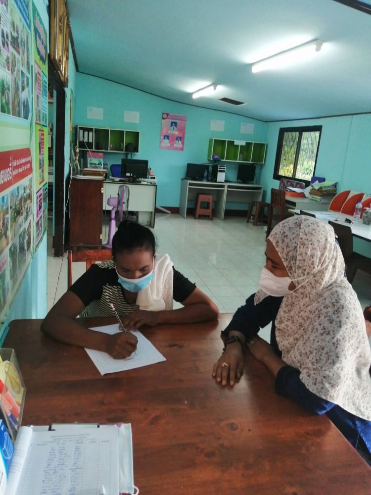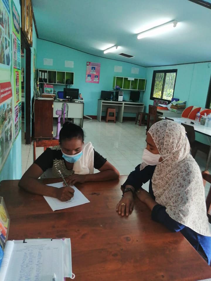 นางสาวจตุพร ทหารไทย ครูชำนาญการ รักษาในตำแหน่ง ผู้อำนวยการการ กศน.อำเภอมะนัง มอบหมายให้นางสาวทิพาพร โต๊ะมิ ครูอาสาสมัคร กศน.ตำบลนิคมพัฒนา จัดกระบวนการสอนผู้ไม่รู้หนังสือ