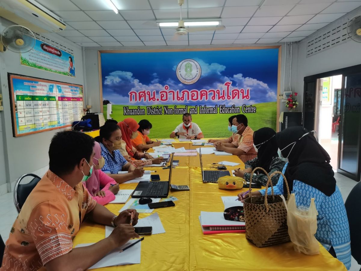 นายคณาธิป บุญญารัตน์ รองผู้อำนวยการสำนักงาน กศน.จังหวัดสตูล รักษาการในตำแหน่งผู้อำนวยการ กศน.อำเภอควนโดน จังหวัดสตูล เป็นประธานและดำเนินการประชุมบุคลากรในสังกัด กศน.อำเภอควนโดน เพื่อร่วมกันวางแผนขับเคลื่อนการจัดกิจกรรมงาน กศน. ประจำปีงบประมาณ 2565 ไตรมาส 4 ณ ห้องประชุม กศน.อำเภอควนโดน จังหวัดสตูล