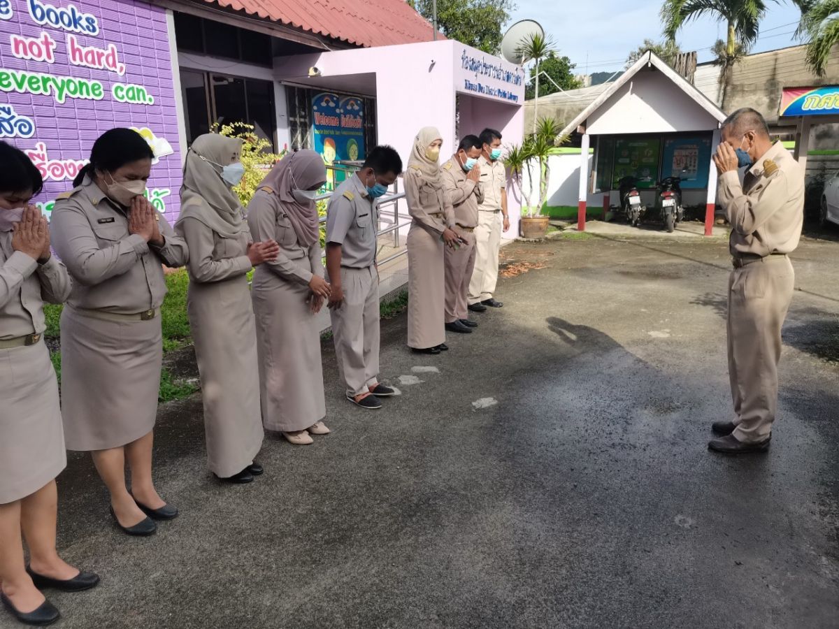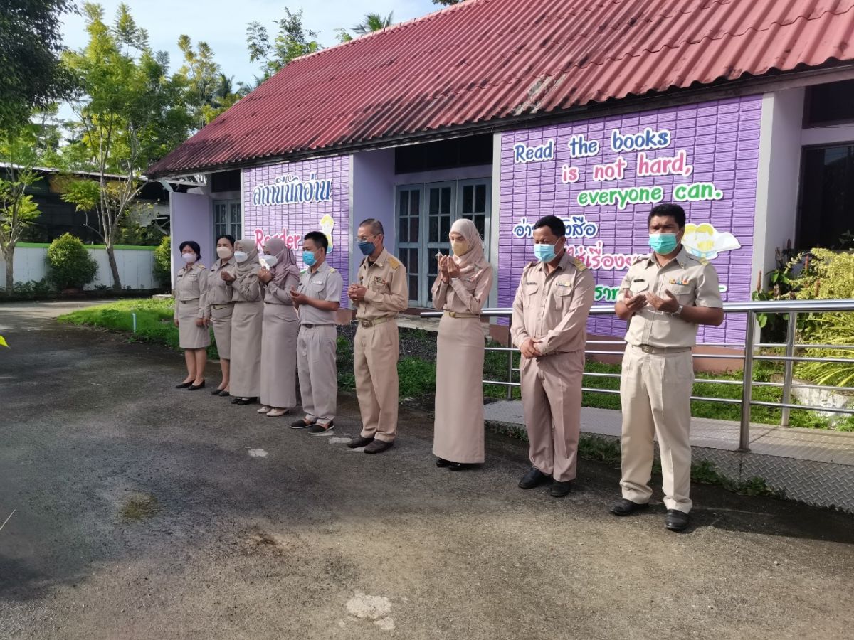 นางสาวสุนีย์ ไมมะหาด ครู กศน.ตำบลควนสตอ และนางรัตติยา ทรุพงษ์ ครูอาสาสมัครฯ กศน.ตำบลควนสตอ พร้อมด้วยบุคลากรในสถานศึกษา ได้รับมอบหมายจาก นายคณาธิป บุญญารัตน์ รองผู้อำนวยการสำนักงาน กศน.จังหวัดสตูล รักษาการในตำแหน่งผู้อำนวยการ กศน.อำเภอควนโดน จังหวัดสตูล ดำเนินกิจกรรมเข้าแถวเคารพธงชาติ ทำกิจกรรมทางศาสนา เพื่อแสดงความจงรักภักดีต่อสถาบันชาติ ศาสนา และพระมหากษัตริย์ โดยเป็นไปตามมาตรการป้องกันการแพร่ระบาดของโรคติดเชื้อไวรัสโคโรนา 2019 หรือ (COVID-19) ณ บริเวณหน้าเสาธง กศน.อำเภอควนโดน จังหวัดสตูล