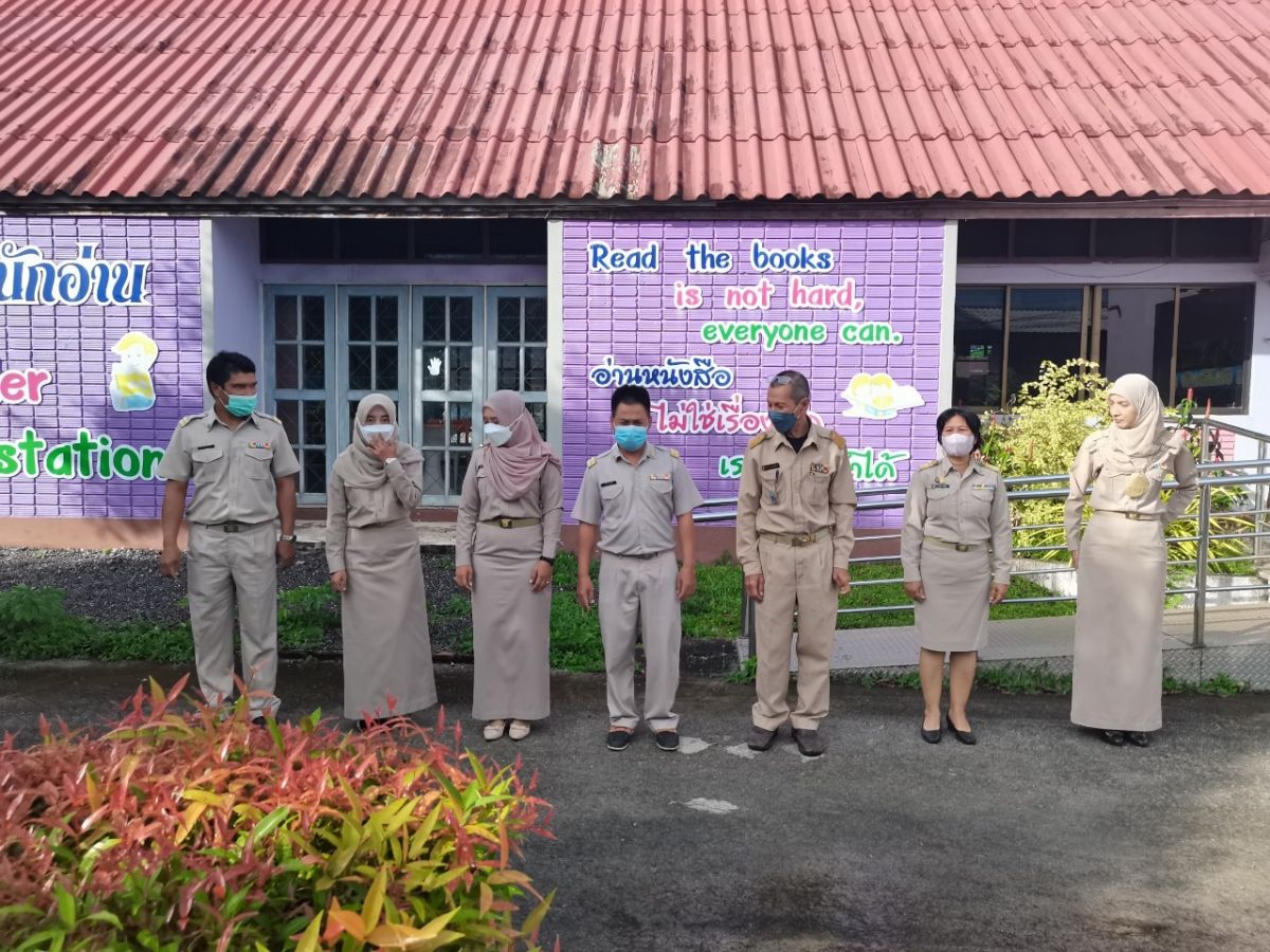 นางวนิดา รักเมือง ครู กศน.ตำบลวังประจัน พร้อมด้วยบุคลากรในสถานศึกษา ได้รับมอบหมายจาก นายคณาธิป บุญญารัตน์ รองผู้อำนวยการสำนักงาน กศน.จังหวัดสตูล รักษาการในตำแหน่งผู้อำนวยการ กศน.อำเภอควนโดน จังหวัดสตูล ดำเนินกิจกรรมเข้าแถวเคารพธงชาติ ทำกิจกรรมทางศาสนา เพื่อแสดงความจงรักภักดีต่อสถาบันชาติ ศาสนา และพระมหากษัตริย์ โดยเป็นไปตามมาตรการป้องกันการแพร่ระบาดของโรคติดเชื้อไวรัสโคโรนา 2019 หรือ (COVID-19) ณ บริเวณหน้าเสาธง กศน.อำเภอควนโดน จังหวัดสตูล