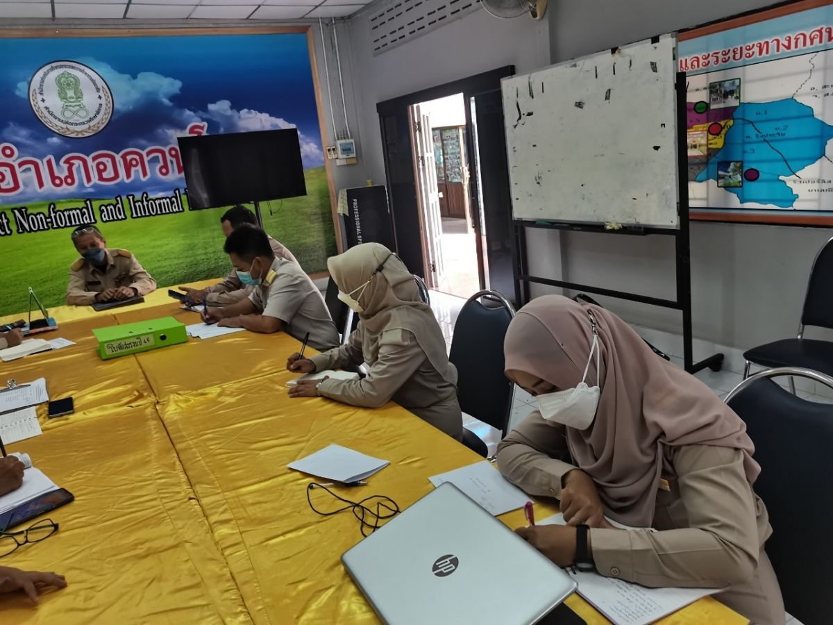 นางสาวอาฟีฟา อาลีมิง ครูอาสาสมัครประจำประจำสถาบันศึกษาปอเนาะท่องจำอัลกุรอัลฟินรเดาวส์ เข้าร่วมประชุมบุคลากรประจำสัปดาห์ เพื่อร่วมวางแผนจัดการจัดกิจกรรมพัฒนาผู้เรียน ประจำภาคเรียนที่ 1 ปีการศึกษา 2565 ณ ห้องประชุม กศน.อำเภอควนโดน จังหวัดสตูล โดยมีนายคณาธิป บุญญารัตน์ รองผู้อำนวยการสำนักงาน กศน.จังหวัดสตูล รักษาการในตำแหน่งผู้อำนวยการ กศน.อำเภอควนโดน จังหวัดสตูล เป็นประธานและดำเนินการประชุม