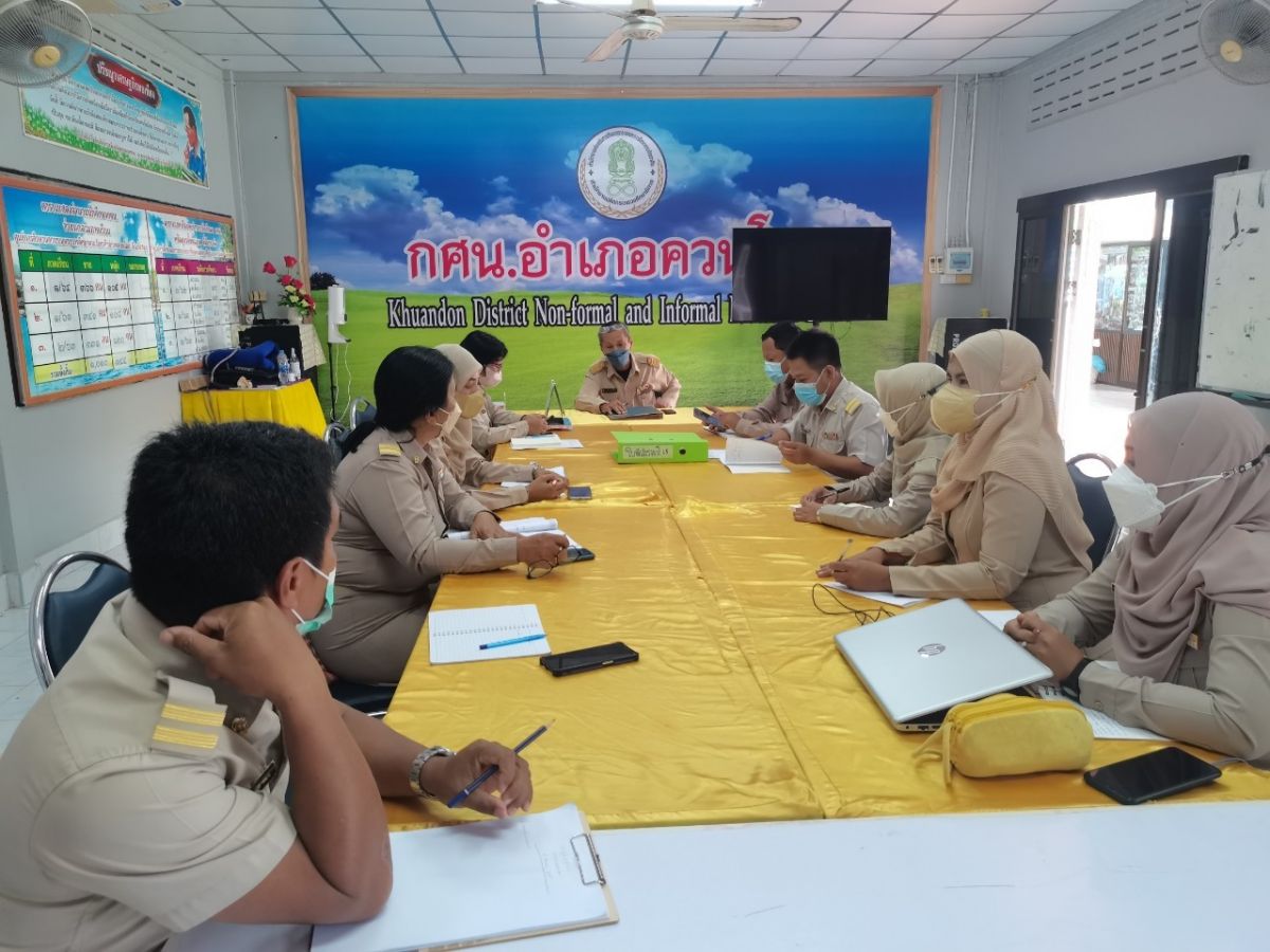 นางสาวนุรวาตี หมัดสกุล ครู กศน.ตำบลย่านซื่อ และนางสาวรมณีย์ ทิ้งปากถ้ำ ครูอาสาสมัคร กศน.ตำบลย่านซื่อ เข้าร่วมประชุมบุคลากรประจำสัปดาห์ เพื่อร่วมวางแผนจัดการจัดกิจกรรมพัฒนาผู้เรียน ประจำภาคเรียนที่ 1 ปีการศึกษา 2565 ณ ห้องประชุม กศน.อำเภอควนโดน จังหวัดสตูล โดยมีนายคณาธิป บุญญารัตน์ รองผู้อำนวยการสำนักงาน กศน.จังหวัดสตูล รักษาการในตำแหน่งผู้อำนวยการ กศน.อำเภอควนโดน จังหวัดสตูล เป็นประธานและดำเนินการประชุม