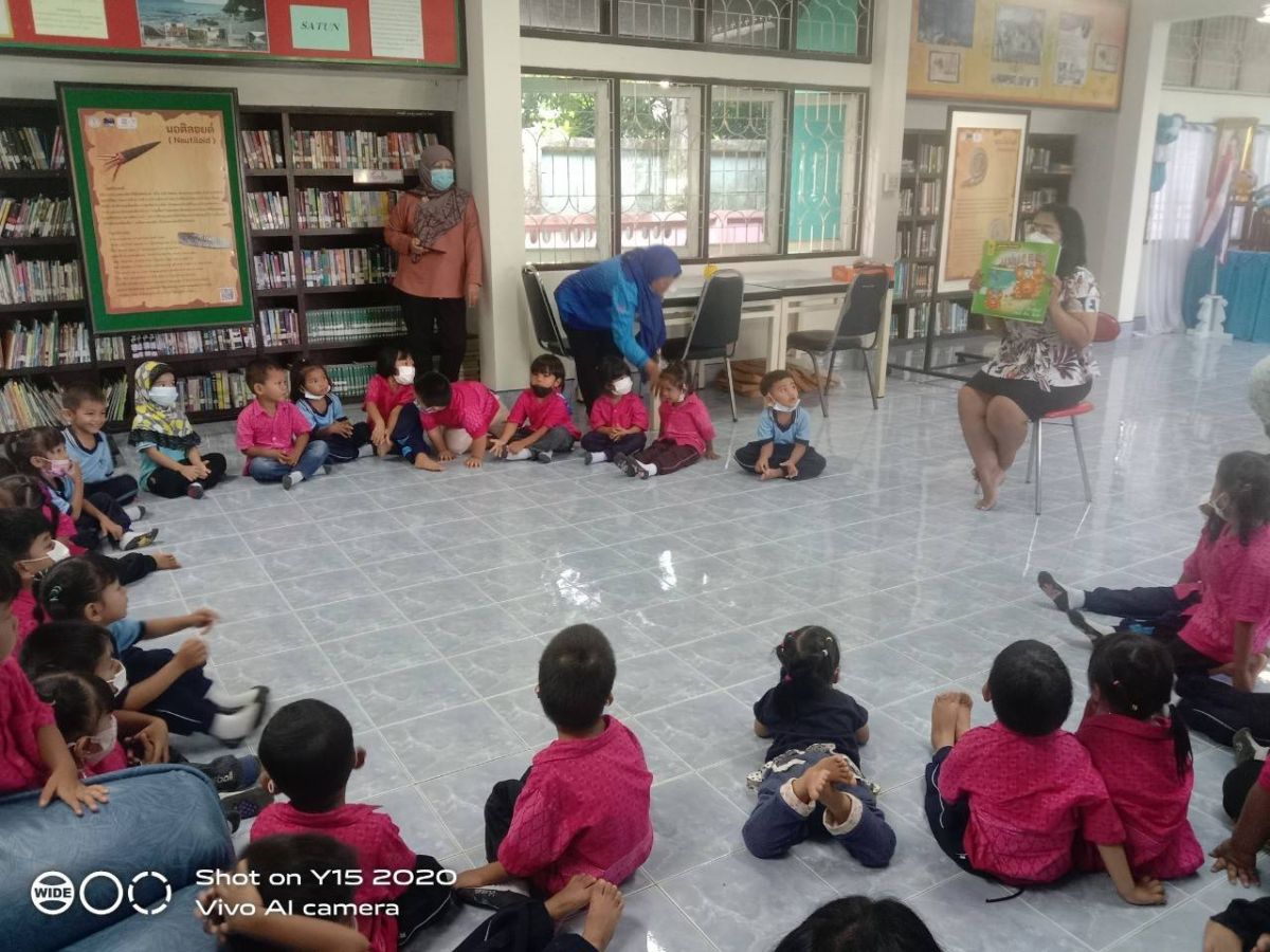นางสาวทิตยสุดา จันทรเกษ บรรณารักษ์ห้องสมุดประชาชนอำเภอละงู พร้อมด้วยนางสาวซานีร๊ะ สันนาหู หัวหน้างานการศึกษาตามอัธยาศัย ร่วมต้อนรับคณะครูและนักเรียนศูนย์พัฒนาเด็กเล็กบ้านปากปิง จำนวน49คน และได้จัดกิจกรรมส่งเสริมการอ่าน เพื่อให้นักเรียนสามารถใช้ทักษะภาษาไทยเพื่อสร้างนิสัยรักการอ่านและการเรียนรู้ให้เหมาะสมกับวัยอย่างมีคุณภาพ ณ ห้องสมุดประชาชนอำเภอละงู จังหวัดสตูล