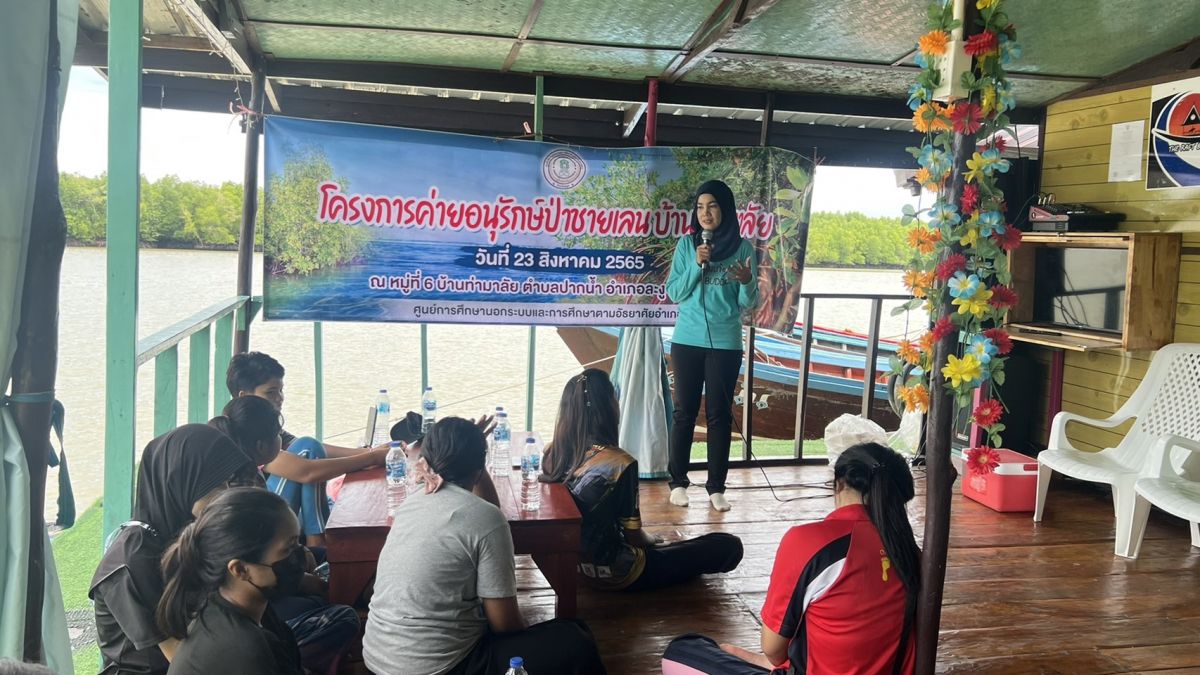 นางสาวซารีนา บ่าวเตบ ครูกศน.ตำบล จัดกิจกรรมพัฒนาผู้เรียน โครงการค่ายอนุรักษ์ป่าชายเลนบ้านท่ามาลัย กลุ่มเป้าหมายเป็นนักศึกษา จำนวน 83 คน มีวัตถุประสงค์เพื่อปลูกจิตสำนึกการอนุรักษ์ทรัพยากรธรรมชาติและสิ่งแวดล้อมประเภทป่าชายเลนและร่วมอนุรักษ์แหล่งเพาะพันธุ์ที่อยู่อาศัยของสัตว์น้ำในท้องถิ่นของตน ณ หมู่ที่ 6 บ้านท่ามาลัย ตำบลปากน้ำ อำเภอละงู จังหวัดสตูล