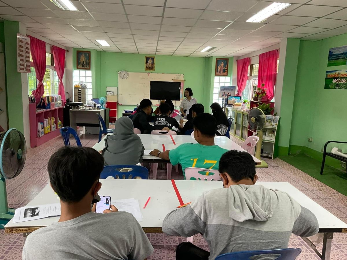 นายทวีศักดิ์ แซ่เจน ครูชำนาญการ รักษาการในตำแหน่งผู้อำนวยการศูนย์ กศน.อำเภอควนกาหลง ลงพื้นที่นิเทศ ติดตามการจัดกิจกรรมโครงการภาษาอังกฤษเพื่อการสื่อสารด้านอาชีพ กิจกรรมภาษาอังกฤษเพื่อการจำหน่ายสินค้าและบริการ ณ กศน.ตำบลทุ่งนุ้ย อำเภอควนกาหลง จังหวัดสตูล