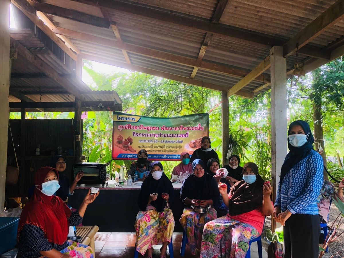 นายทวีศักดิ์ แซ่เจน ครูชำนาญการ รักษาการในตำแหน่งผู้อำนวยการศูนย์ กศน.อำเภอควนกาหลง มอบหมายให้ นางสุคนธา หลีหมัด ครูอาสาฯ นิเทศติดตามการจัดโครงการศูนย์ฝึกอาชีพชุมชน(กลุ่มสนใจ) การทำขนมเบเกอรี่ โดยมีนางซอฟีย๊ะ บิลโอ ครูกศน.ตำบล เป็นผู้รับผิดชอบโครงการ ระหว่างวันที่ 25-28 สิงหาคม 2565