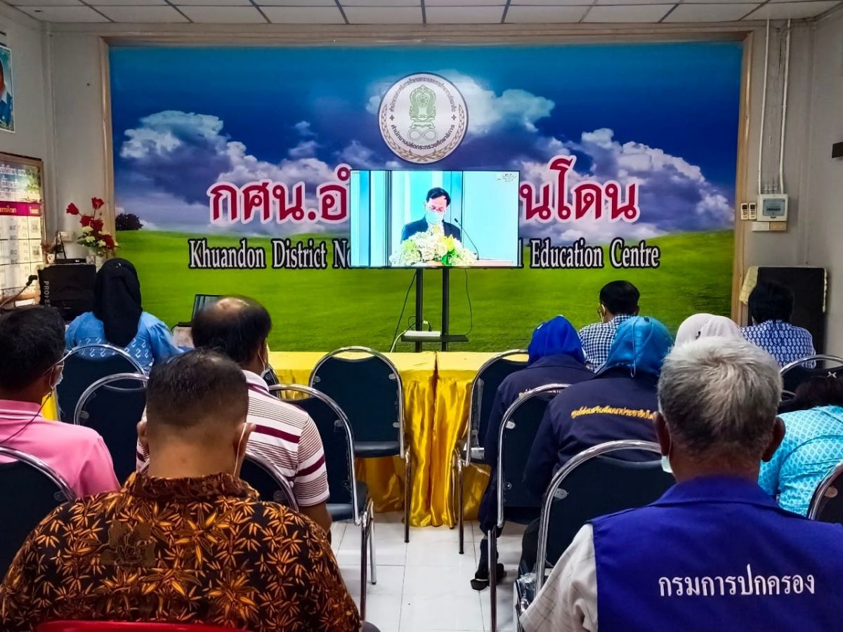 กศน.ตำบลควนโดน ร่วมชมการถ่ายทอดสดการสัมมนา เรื่อง \"ศูนย์ส่งเสริมพัฒนาประชาธิปไตย (ศส.ปชต.) : ความสำคัญและบทบาทในการปกครองระบอบประชาธิปไตยอันมีพระมหากษัตริย์ทรงเป็นประมุข\"