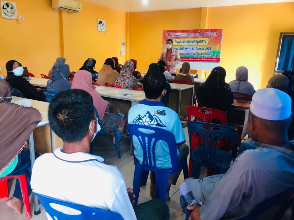 นายทวีศักดิ์ แซ่เจน ครูชำนาญการ รักษาการในตำแหน่งผู้อำนวยการ กศน. อำเภอควนกาหลง เปิดโครงการอบรมภาษาเพื่อการสื่อสาร กิจกรรมภาษามลายูกลาง ระหว่างวันที่ 29-31 สิงหาคม 2565 ณ มัสยิดบ้านควนบ่อทอง หมู่ที่1 ตำบลทุ่งนุ้ย โดยมีนางสุคนธา หลีหมัด เป็นผู้รับผิดชอบโครงการ