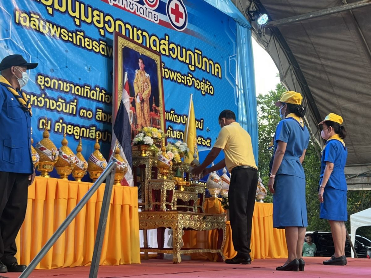 นายมรกต กันหนองผือ ผู้อำนวยการศูนย์ กศน.อำเภอละงู ได้รับมอบหมายจากนางสาวนราวรรณ เวชธรรม ผู้อำนวยการสำนักงาน กศน.จังหวัดสตูล เข้าร่วมเป็นเกียรติในงานชุมนุมยุวกาชาดส่วนภูมิภาค เฉลิมพระเกียรติพระบาทสมเด็จพระเจ้าอยู่หัวและร่วมถวายพานพุ่มเงิน พานพุ่มทอง จังหวัดสตูล ประจำปี 2565 ณ ค่ายลูกเสือปากบาง อำเภอละงู จังหวัดสตูล