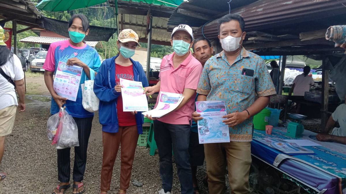 นายสมบูลย์ คอยอาสา ครูอาสาฯ กศน.อำเภอทุ่งหว้า ดำเนินการจัดกิจกรรมห้องสมุดเคลื่อนที่สำหรับชาวตลาดฯ