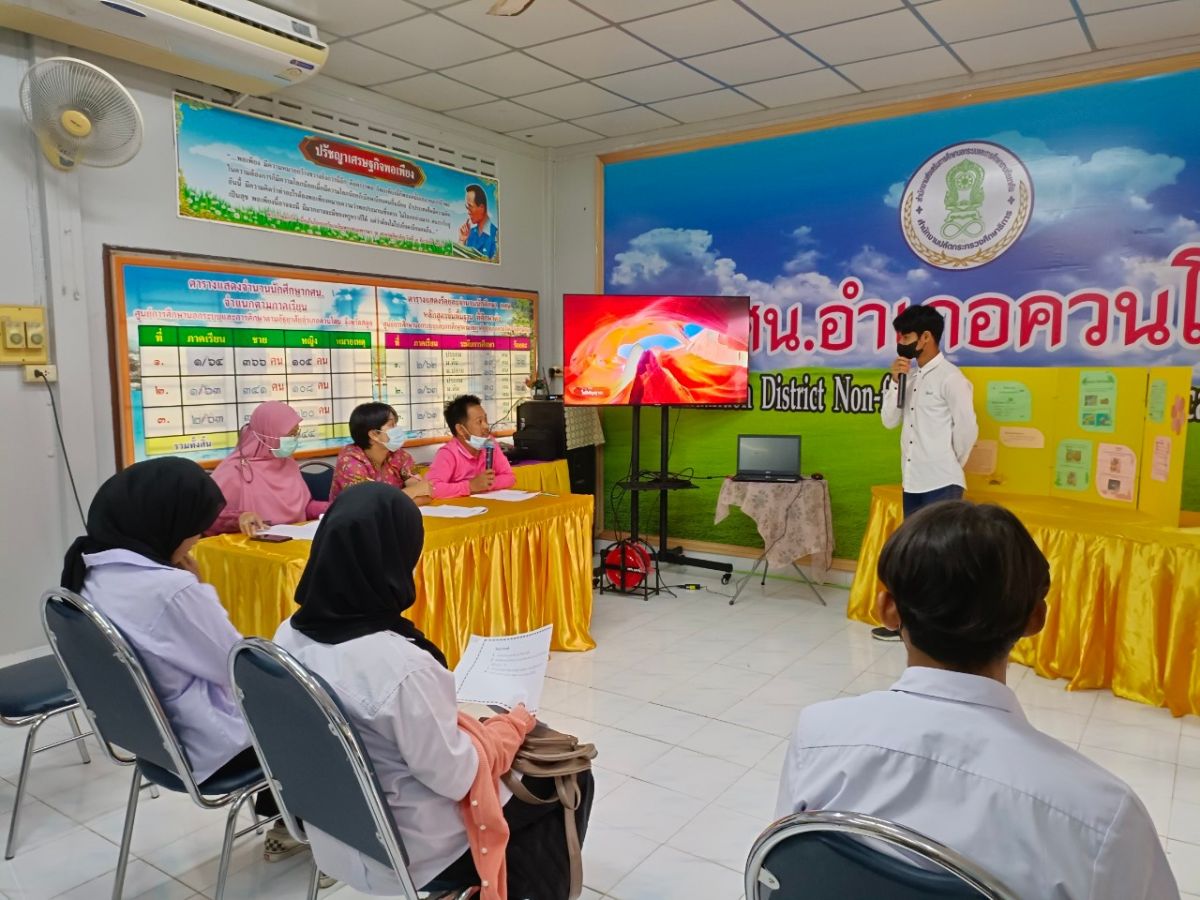 นายคณาธิป บุญญารัตน์ รองผู้อำนวยการ สำนักงาน กศน.จังหวัดสตูล รักษาการในตำแหน่ง ผู้อำนวยการ กศน.อำเภอควนโดน จังหวัดสตูล มอบหมายให้ ครู กศน.ตำบล จัดประกวดโครงงานนักศึกษา ประจำภาคเรียนที่ 1 ปีการศึกษา 2565 โดยมีวัตถุประสงค์ในการจัดเพื่อส่งเสริมการจัดกิจกรรมการเรียนรู้โครงงานวิทยาศาสตร์สำหรับนักศึกษา กศน. และเพื่อส่งเสริมความรู้ความเข้าใจกระบวนการทางวิทยาศาสตร์เทคโนโลยี และการใช้พลังงานไฟฟ้าให้กับนักศึกษา กศน. ณ ห้องประชุม กศน.อำเภอควนโดน จังหวัดสตูล