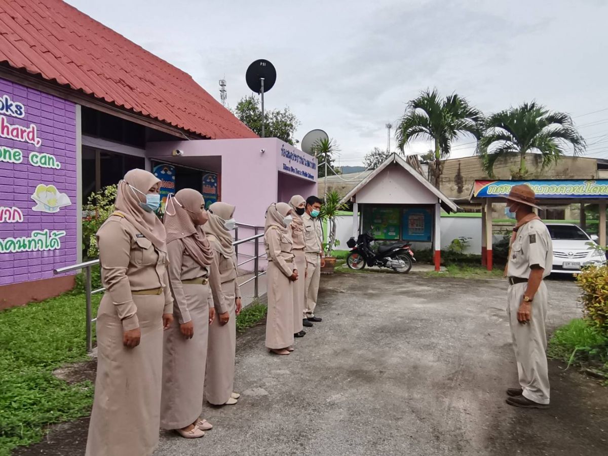 นางวนิดา รักเมือง ครู กศน.ตำบลวังประจัน พร้อมด้วยบุคลากรในสถานศึกษา ได้รับมอบหมายจาก นายคณาธิป บุญญารัตน์ รองผู้อำนวยการสำนักงาน กศน.จังหวัดสตูล รักษาการในตำแหน่งผู้อำนวยการ กศน.อำเภอควนโดน จังหวัดสตูล ดำเนินกิจกรรมเข้าแถวเคารพธงชาติ ทำกิจกรรมทางศาสนา เพื่อแสดงความจงรักภักดีต่อสถาบันชาติ ศาสนา และพระมหากษัตริย์ โดยเป็นไปตามมาตรการป้องกันการแพร่ระบาดของโรคติดเชื้อไวรัสโคโรนา 2019 หรือ (COVID-19) ณ บริเวณหน้าเสาธง กศน.อำเภอควนโดน จังหวัดสตูล