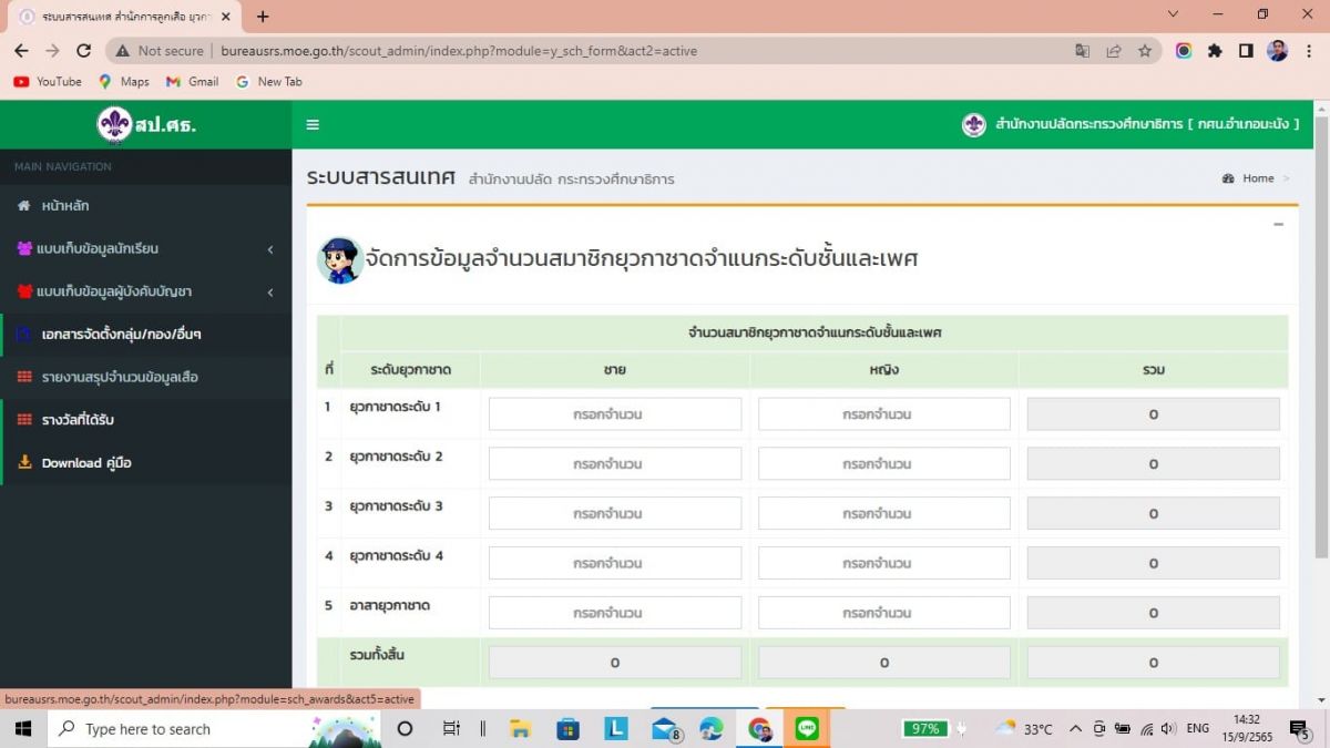 เข้าร่วมการอบรมเชิงปฎิบัติการโครงการส่งเสริมและพัฒนาระบบข้อมูลด้านลูกเสือ