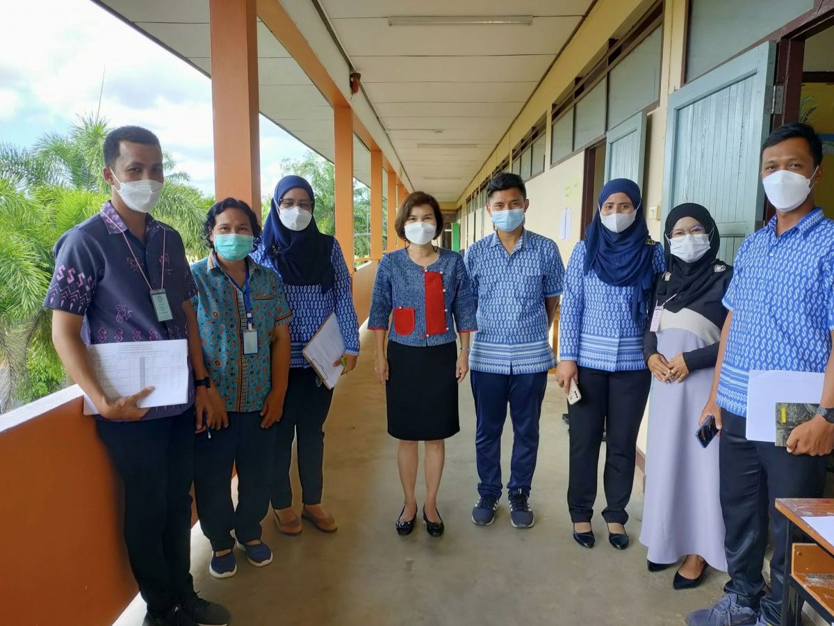 นางสาววชิรา คงพูล บรรณารักษ์ปฏิบัติการ รักษาในตำแหน่ง ผู้อำนวยการ กศน.อำเภอท่าแพ และบุคลากร กศน.อำเภอท่าแพ ร่วมต้อนรับ นางสาวนราวรรณ เวชธรรม ผู้อำนวยการสำนักงาน กศน.จังหวัดสตูล พร้อมด้วย เจ้าหน้าที่ที่เกี่ยวข้อง ลงพื้นนิเทศสนามสอบวัดผลสัมฤทธิ์ ปลายภาคเรียน หลักสูตรการศึกษานอกระบบ ระดับการศึกษาขั้นพื้นฐาน พุทธศักราช 2551 ประจำภาคเรียนที่ 1 ปีการศึกษา 2565 ณ โรงเรียนท่าแพผดุงวิทย์ อำเภอท่าแพ จังหวัดสตูล