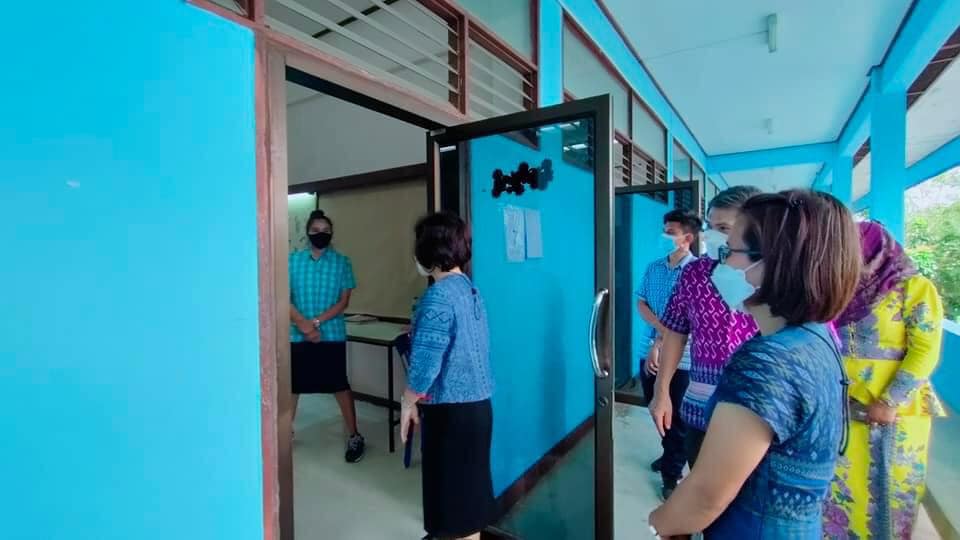 กศน.อำเภอควนกาหลงร่วมต้อนรับ นางสาวนราวรรณ เวชธรรม ผู้อำนวยการสำนักงาน กศน.จังหวัดสตูล พร้อมด้วย เจ้าหน้าที่ที่เกี่ยวข้อง ลงพื้นนิเทศสนามสอบวัดผลสัมฤทธิ์ ปลายภาคเรียน หลักสูตรการศึกษานอกระบบ ระดับการศึกษาขั้นพื้นฐาน พุทธศักราช 2551 ประจำภาคเรียนที่ 1 ปีการศึกษา 2565 ณ โรงเรียนควนกาหลงวิทยาคม อำเภอควนกาหลง จังหวัดสตูล