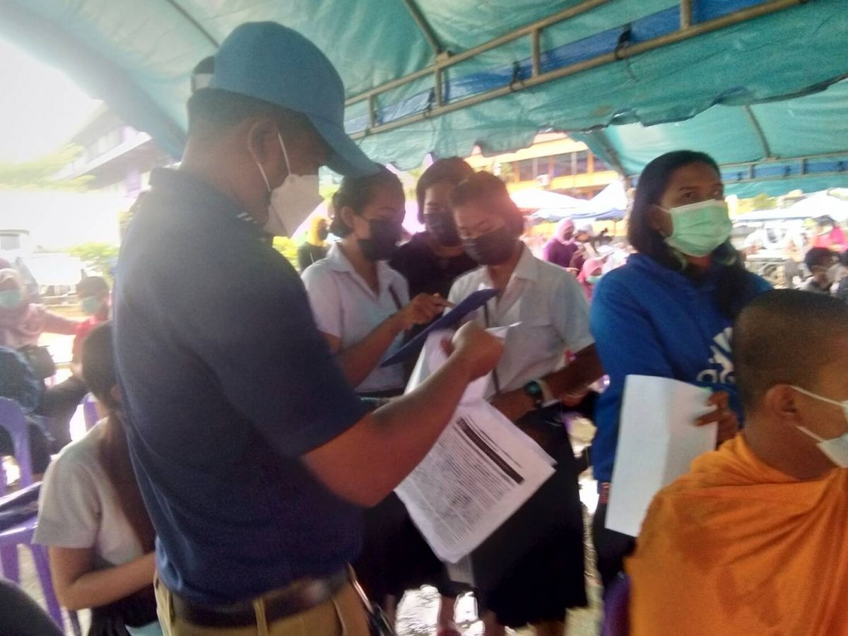 นายอาดำ ลิงาลาห์ ผู้อำนวยการศูนย์ กศน.อำเภอทุ่งหว้า จังหวัดสตูล มอบหมายให้นายสมบูลย์ คอยอาสา ครูอาสาฯ นำนักศึกษา กศน.อำเภอทุ่งหว้า จำนวน 15 คน รับวัคซีนเข็มที่ 2