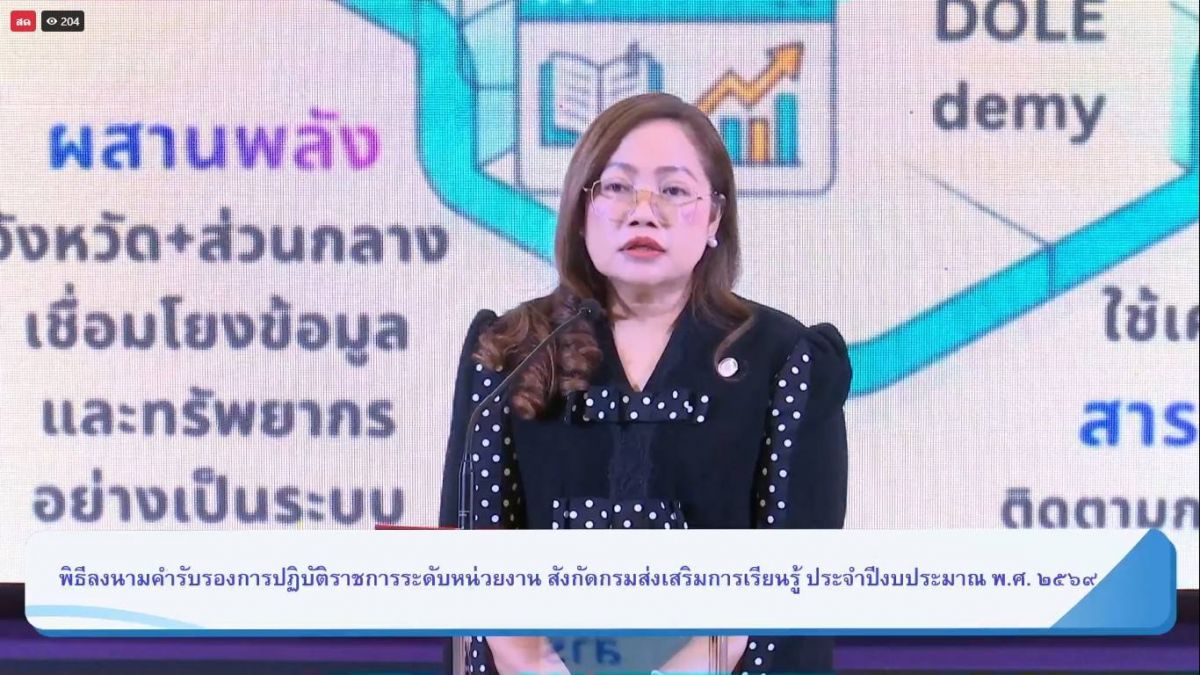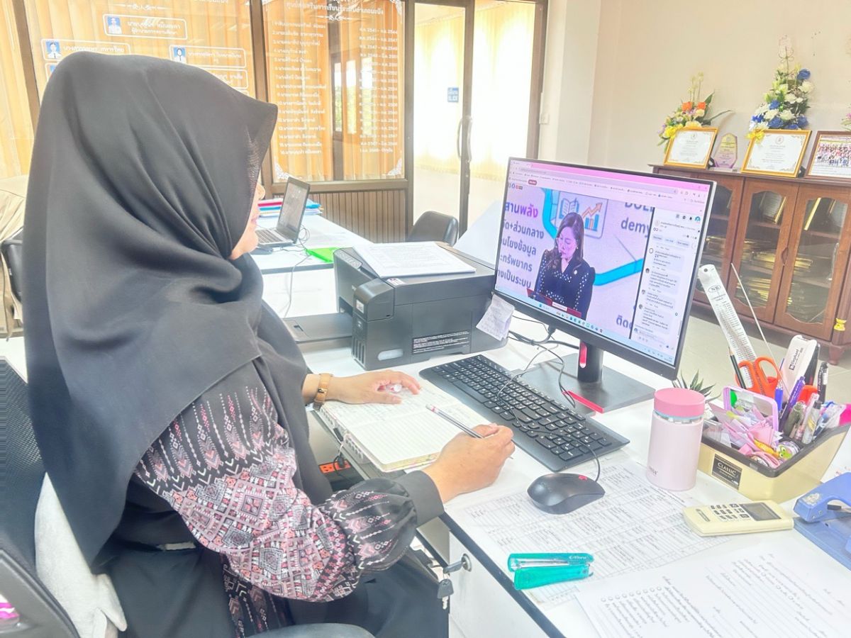 นายบุญนำ หมีนยะลา ผู้อำนวยการสถานศึกษาศูนย์ส่งเสริมการเรียนรู้ระดับอำเภอมะนัง พร้อมด้วยบุคลากรในสังกัด รับชมการถ่ายทอดสดพิธีลงนามคำรับรองการปฏิบัติราชการระดับหน่วยงาน สังกัดกรมส่งเสริมการเรียนรู้ ประจำปีงบประมาณ พ.ศ. 2569