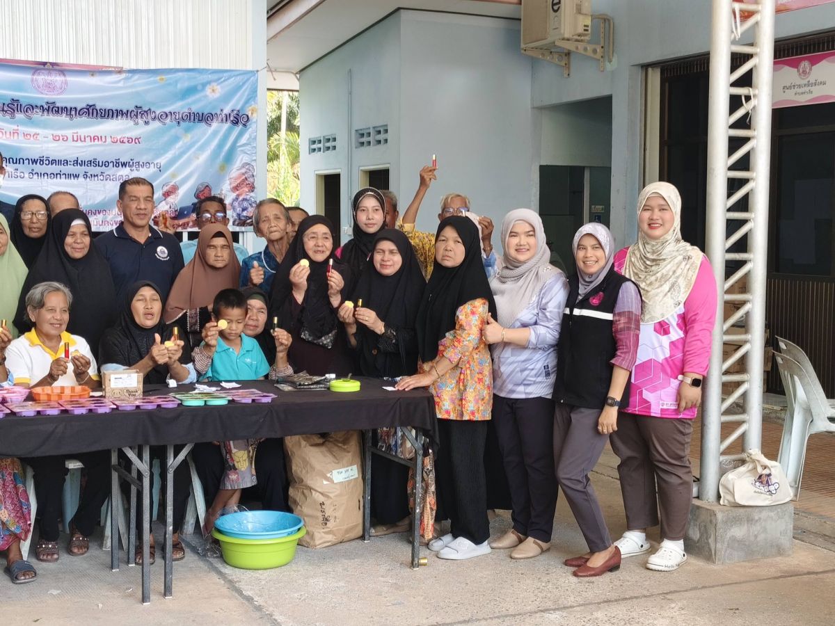 นายอาดำ ลิงาลาห์ ผู้อำนวยการ สกร.ระดับอำเภอท่าแพ มอบหมายให้ นางยามานี ปาละวัล ครูศูนย์การเรียนรู้ แพ ร่วมเป็นวิทยากรการทำสบู่ก้อนและสบู่เหลว ตามโครงการส่งเสริม การเรียนรู้และพัฒนาศักยภาพผู้สูงอายุตำบลท่าเรือ เพื่อให้ผู้สูงอายุมีความรู้ ความเข้าใจใน การดูแลตนเองครบทุกมิติ และสามารถเข้าถึงบริการภาครัฐได้อย่างถูกต้อง และส่งเสริมและพัฒนาทักษะอาชีพ ที่เหมาะสมกับวัยและศักยภาพอันจะนำไปสู่การมีรายได้เสริมและพึ่งพาตนเองได้ ซึ่งจัดโดยสำนักงานพัฒนาสังคมและความมั่นคงของมนุษย์จังหวัดสตูล ณ ศูนย์พัฒนาคุณภาพชีวิตและส่งเสริมอาชีพผู้สูงอายุ ตำบลท่าเรือ อำเภอท่าแพ จังหวัดสตูล