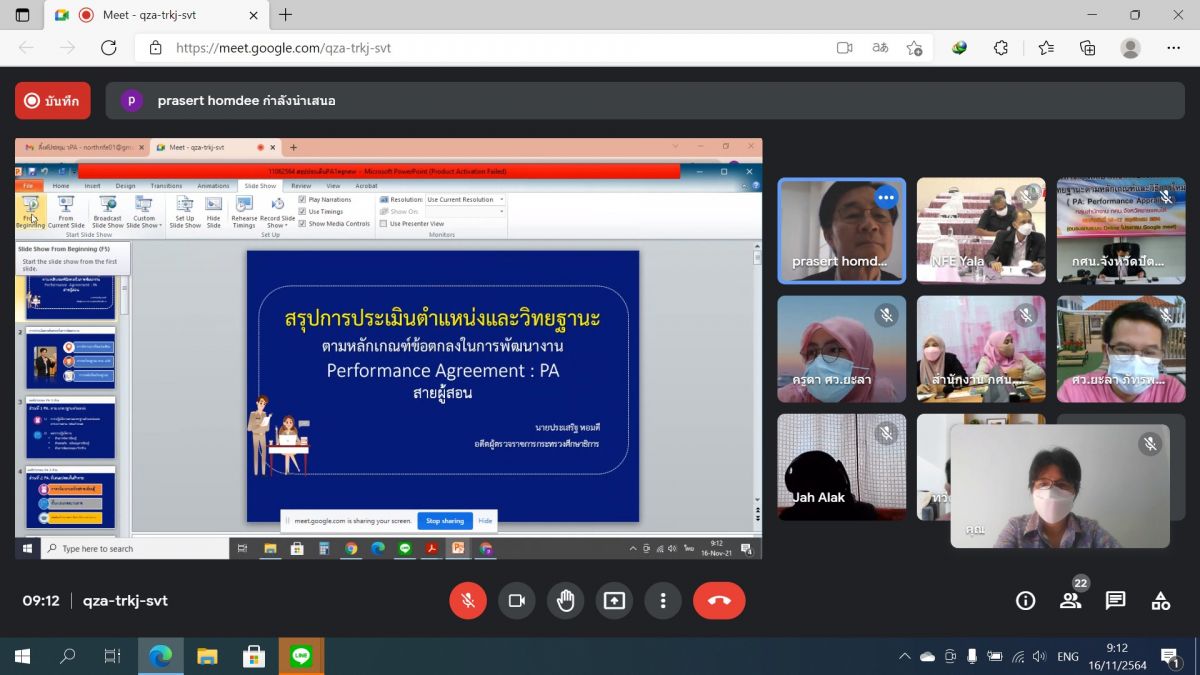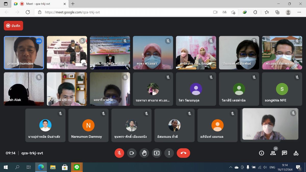 นางเนาวรัตน์ ศรีหมั่น ครู ชำนาญการ รักษาการในตำแหน่งผู้อำนวยการ กศน.อำเภอควนโดน เข้าร่วมอบรมโครงการฝึกอบรมเชิงปฏิบัติการการพัฒนาข้าราชการครูและบุคลากรทางการศึกษา เพื่อการประเมินตำแหน่งให้มีหรือเลื่อนวิทยฐานะตามหลักเกณฑ์และวิธีการใหม่ ว.PA (PA : Performance Appraisal) ผ่านระบบออนไลน์ โปรแกรม Google meet ณ กศน.อำเภอควนโดน จังหวัดสตูล โดยมีนายประเสริฐ หอมดี ข้าราชการบำนาญ อดีตผู้ตรวจราชการกระทรวงศึกษาธิการ เป็นวิทยากรให้ความรู้ในการอบรมครั้งนี้