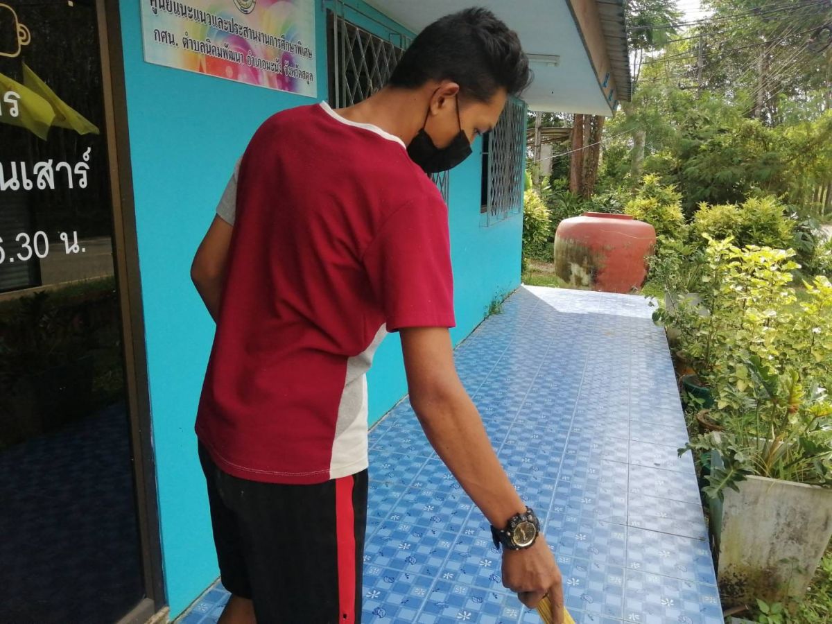 นางสาวจตุพร ทหารไทย ครูชำนาญการ รักษาการในตำแหน่ง ผู้อำนวยการศูนย์ กศน.อำเภอมะนังจังหวัดสตูล มอบหมายให้นางสาวทิพาพร โต๊ะมิ ครูอาสาสมัครฯ กศน.ตำบลนิคมพัฒนา พร้อมด้วยนักศึกษา.กศน ทำความสะอาด ปัดกวาด เช็ดถู กศน.ตำบลนิคมพัฒนา เพื่อเตรียมความพร้อมในการจัดการเรียนการสอนในรูปแบบ On site ต่อไป