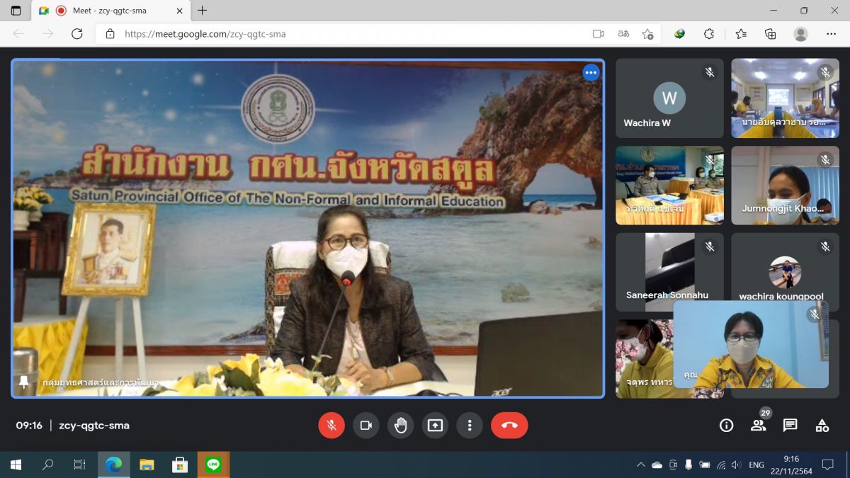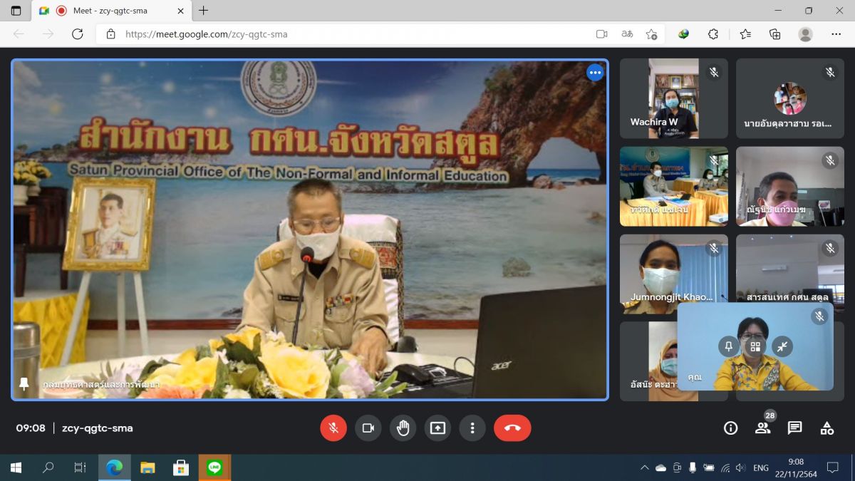นางเนาวรัตน์ ศรีหมั่น ครู ชำนาญการ รักษาการในตำแหน่งผู้อำนวยการ กศน.อำเภอควนโดน พร้อมด้วยเจ้าหน้าที่การเงิน เจ้าหน้าที่พัสดุ เจ้าหน้าที่บุคลากร ในสังกัด เข้าร่วมประชุมโครงการอบรมเพื่อพัฒนาศักยภาพบุคลากร กศน.ด้านบริหารความเสี่ยงในการจัดการศึกษานอกระบบและการศึกษาตามอัธยาศัย สำนักงาน กศน.จังหวัดสตูล ผ่านระบบออนไลน์ ผ่านโปรแกรม Google Meetโดยมีนายคณาธิป บุญรัตน์ รองผู้อำนวยการ สำนักงาน กศน.จังหวัดสตูล เป็นประธานเปิด ณ กศน.อำเภอควนโดนจังหวัดสตูล
