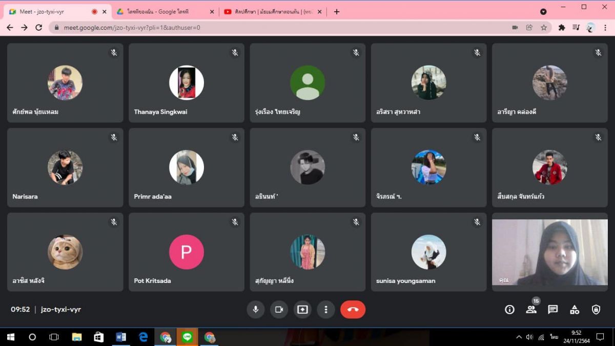 24 พฤศจิกายน 2564 นางสาววิภานันท์ พุทธนุกูล ผู้อำนวยการศูนย์ กศน.อำเภอเมืองสตูล มอบหมายให้ นางสาวสุนิษา ยังสมัน ครูอาสาสมัครฯกศน. ตำบลปูยู จัดกิจกรรมการเรียนการสอน กระบวนการเรียนรู้ออนไลน์ผ่าน google meet ให้กับนักศึกษาระดับมัธยมศึกษาตอนต้นประจำภาคเรียนที่ 2 ปีการศึกษา 2564 ภายใต้การควบคุมการแพร่ระบาดเชื้อไวรัสโคโรนา 2019