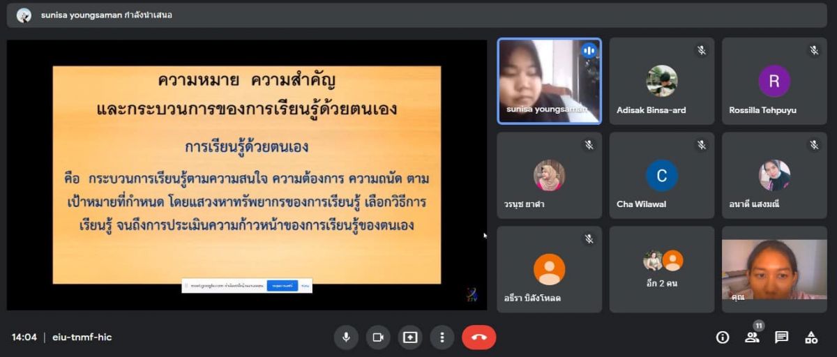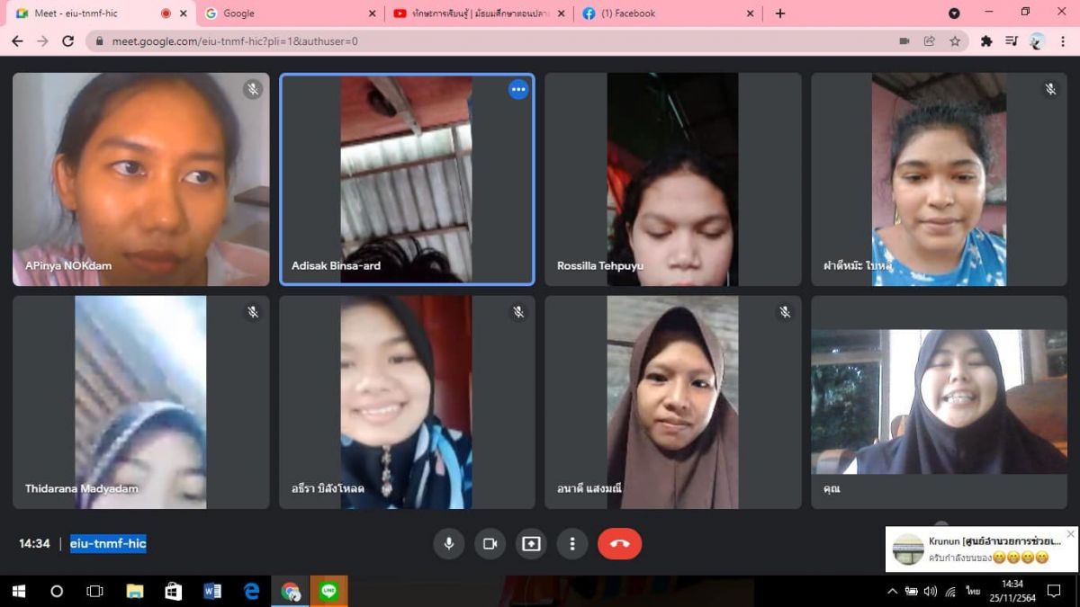 25 พฤศจิกายน 2564 นางสาววิภานันท์ พุทธนุกูล ผู้อำนวยการศูนย์ กศน.อำเภอเมืองสตูล มอบหมายให้ นางสาวสุนิษา ยังสมัน ครูอาสาสมัครฯกศน. ตำบลปูยู และนางสาวอภิญญา นกดำ ครู กศน.ตำบลปูยู จัดกิจกรรมการเรียนการสอน กระบวนการเรียนรู้ออนไลน์ผ่าน google meet ให้กับนักศึกษาระดับมัธยมศึกษาตอนปลาย ประจำภาคเรียนที่ 2 ปีการศึกษา 2564 ภายใต้การควบคุมการแพร่ระบาดเชื้อไวรัสโคโรนา 2019