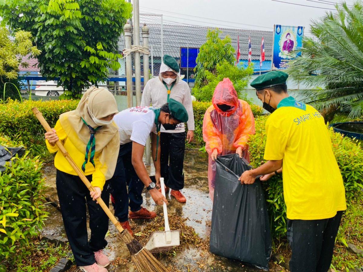 นางสาวอาฟีฟา อาลีมิง ครูอาสาสมัครฯ ประจำสถาบันศึกษาปอเนาะ ได้รับมอบหมายจาก นางเนาวรัตน์ ศรีหมั่น ครู ชำนาญการ รักษาการในตำแหน่งผู้อำนวยการ กศน.อำเภอควนโดน จังหวัดสตูล พร้อมด้วยบุคลากรและลูกเสือ เนตรนารี จำนวน 22 คน เข้าร่วมจัดกิจกรรมจิตอาสาบำเพ็ญประโยชน์ เนื่องในวันคล้ายวันสวรรคตแห่งพระบาทสมเด็จพระมงกุฎเกล้าเจ้าอยู่หัว “วันสมเด็จพระมหาธีรราชเจ้า” ประจำปี 2564 เพื่อน้อมรำลึกในพระมหากรุณาธิคุณ เนื่องในวันคล้ายวันสวรรคตแห่งพระบาทสมเด็จพระมงกุฎเกล้าเจ้าอยู่หัว พระผู้พระราชทานกำเนิดลูกเสือไทย และเพื่อส่งเสริม สร้างจิตสำนึก ปลูกฝังความเสียสละประโยชน์ส่วนตน เพื่อประโยชน์ส่วนรวม โดยมีการจัดทำกิจกรรมทำความสะอาด กวาดขยะ ตัดหญ้า ดูแลต้นไม้ ฉีดตะไคร่น้ำบนทางเท้า ณ บริเวณอาคาร กศน.อำเภอควนโดนและบริเวณโดยรอบห้องสมุดประชาชนอำเภอควนโดน จังหวัดสตูล