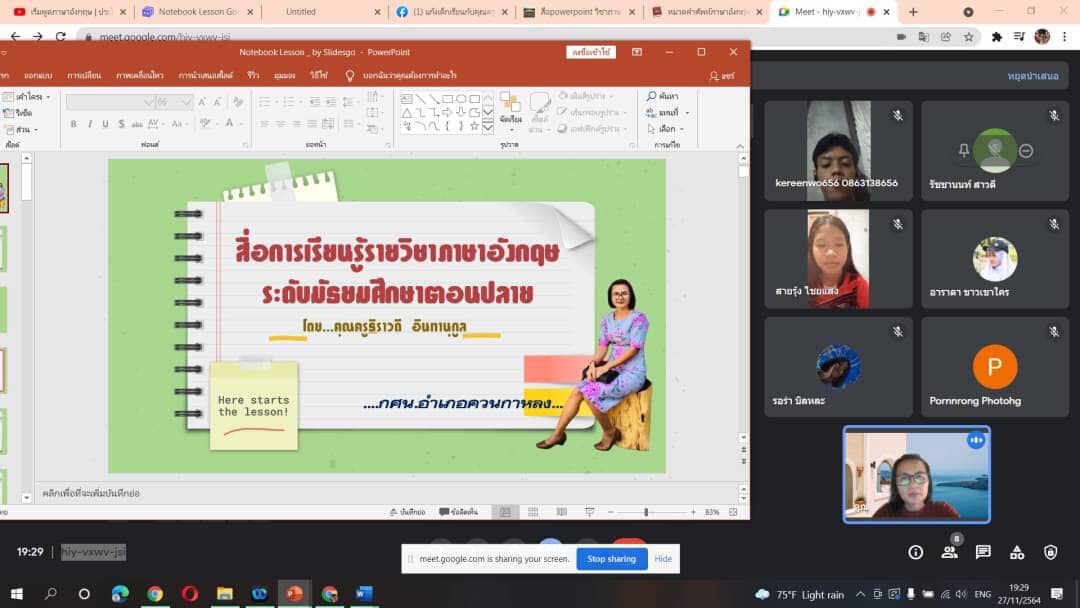 มอบหมายให้นางธิราวดี อินทานุกูล ครูผู้ช่วยจัดการเรียนการสอนรูปแบบ on line ผ่าน google meet ระดับม.ปลาย