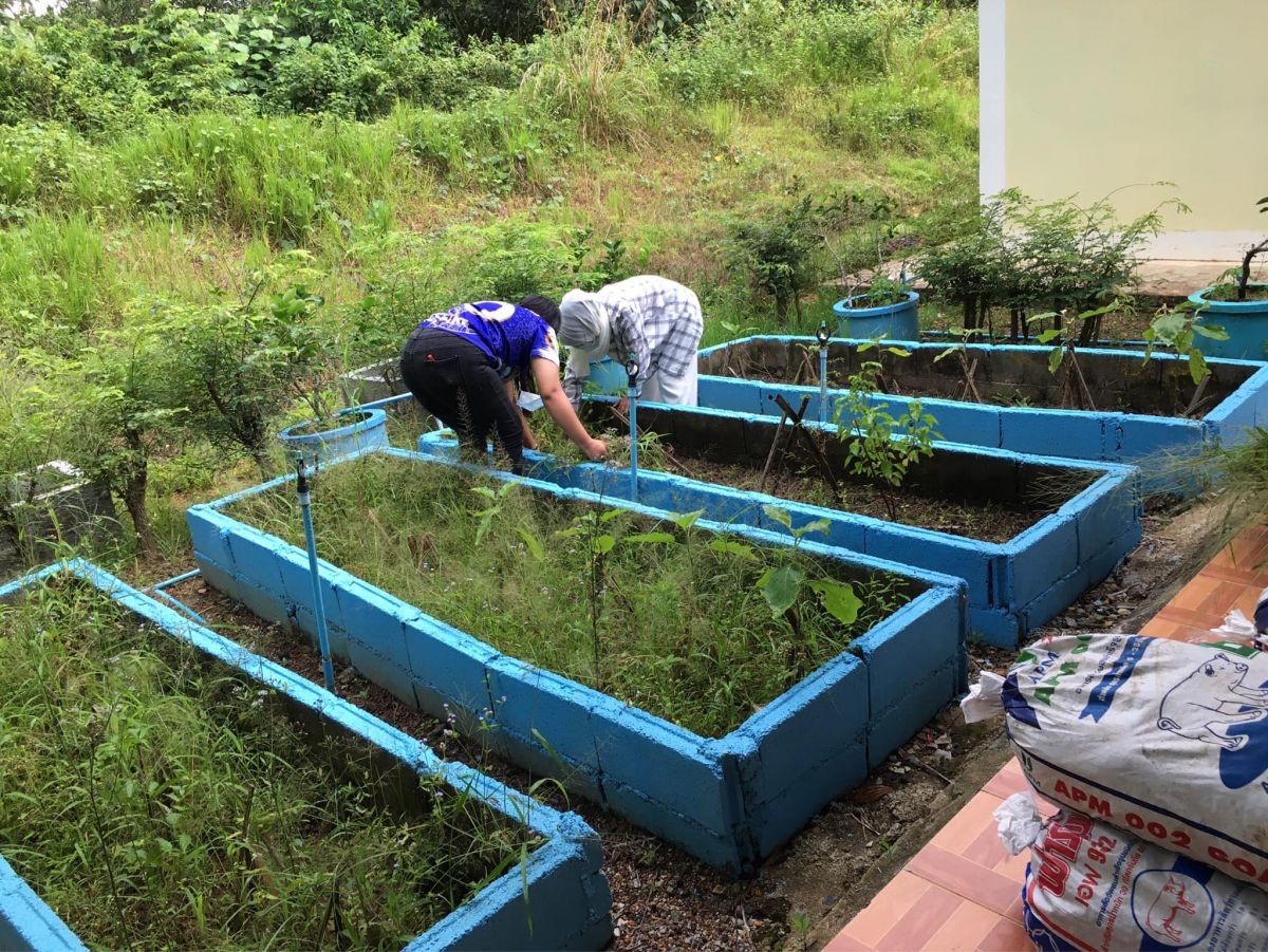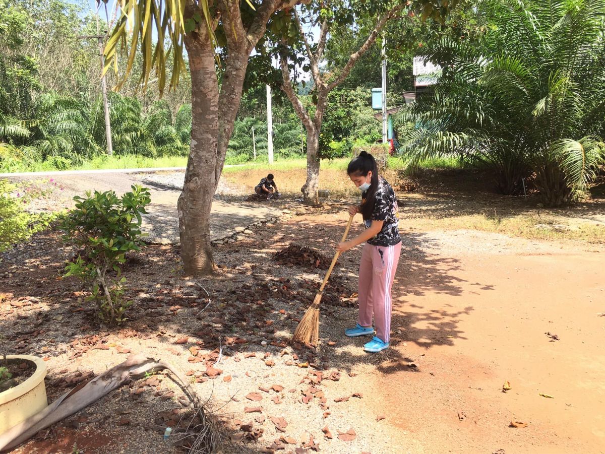 มอบหมายให้นายสมนึก เตบฮางะ ครูกศน.ตำบล นำนักศึกษาร่วมกันกิจกรรม 5 ส ร่วมกันพัฒนาปรับปรุงภูมิทัศน์กศน.ตำบลโ