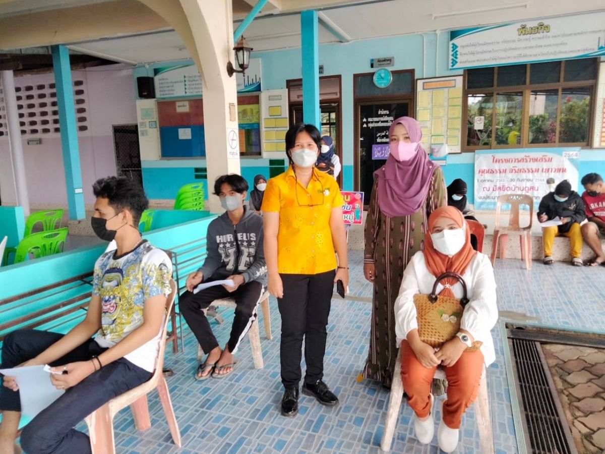 นางสาวนุรวาตี หมัดสกุล ครู กศน.ตำบลย่านซื่อ ได้รับมอบหมายจาก นางเนาวรัตน์ ศรีหมั่น ครู ชำนาญการ รักษาการในตำแหน่ง ผุ้อำนวยการ กศน.อำเภอควนโดน นำนักศึกษา กศน.ตำบลย่านซื่อ เข้ารับการฉีดวัคซีน เพื่อป้องกันการแพร่ระบาดของโรคติดเชื้อไวรัสโคโรนา 2019 การเข้ารับฉีดวัคซีนครั้งนี้ เป็นไปตามมาตรการการป้องกันการแพร่ระบาดของโรคติดเชื้อไวรัสโคโรนา 2019 อย่างเคร่งครัด ณ มัสยิดบ้านดูสน อำเภอควนโดน จังหวัดสตูล