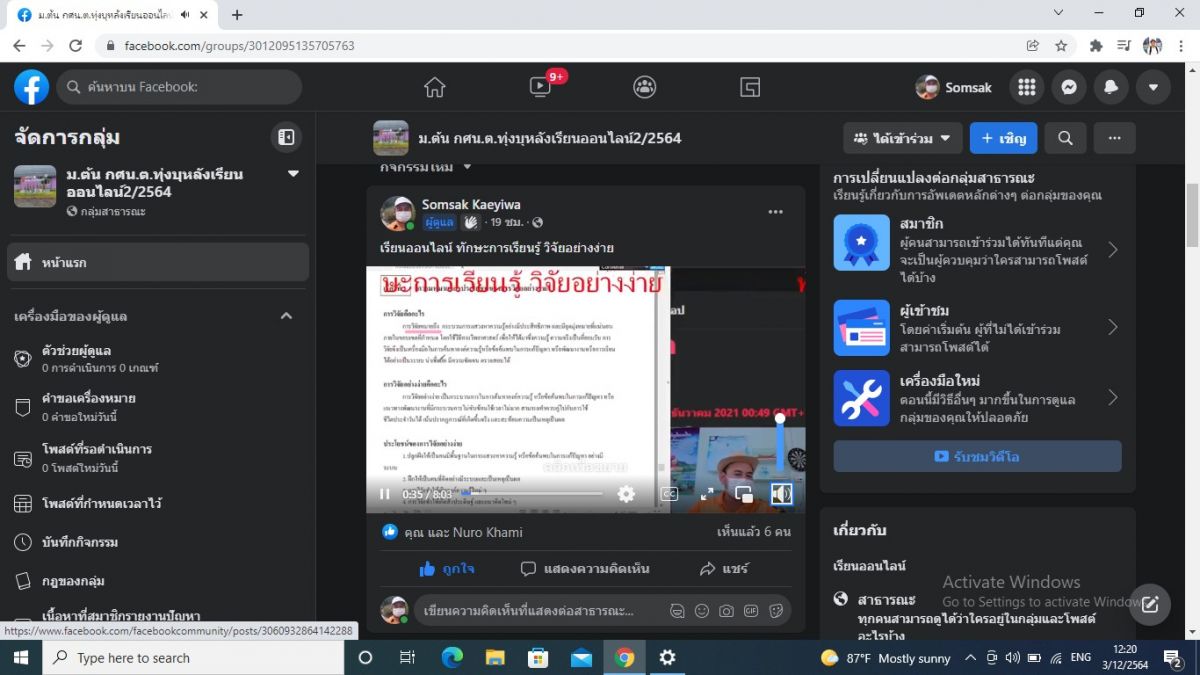 กศน.ตำบลป่าแก่บ่อหิน อำเภอทุ่งหว้า จัดการเรียนการสอนออนไลน์ขั้นพื้นฐานระดับม.ปลายวิชาการขายและการตลาดผ่านระบบ google meet ,you tube,ผ่านห้องเรียนกลุ่มไลน์ และทำแบบทดสอบผ่าน เว็บไซต์ Quiziss