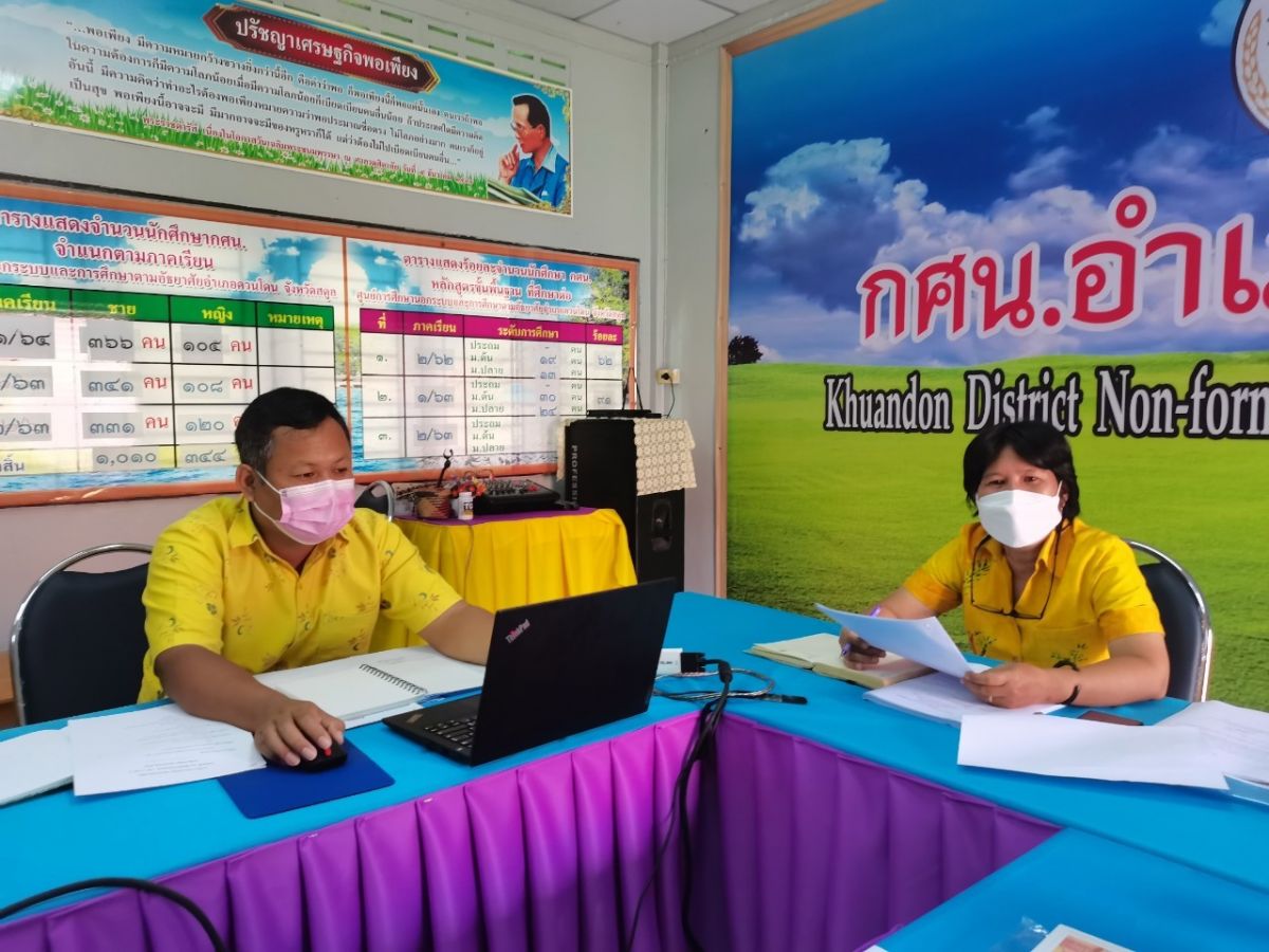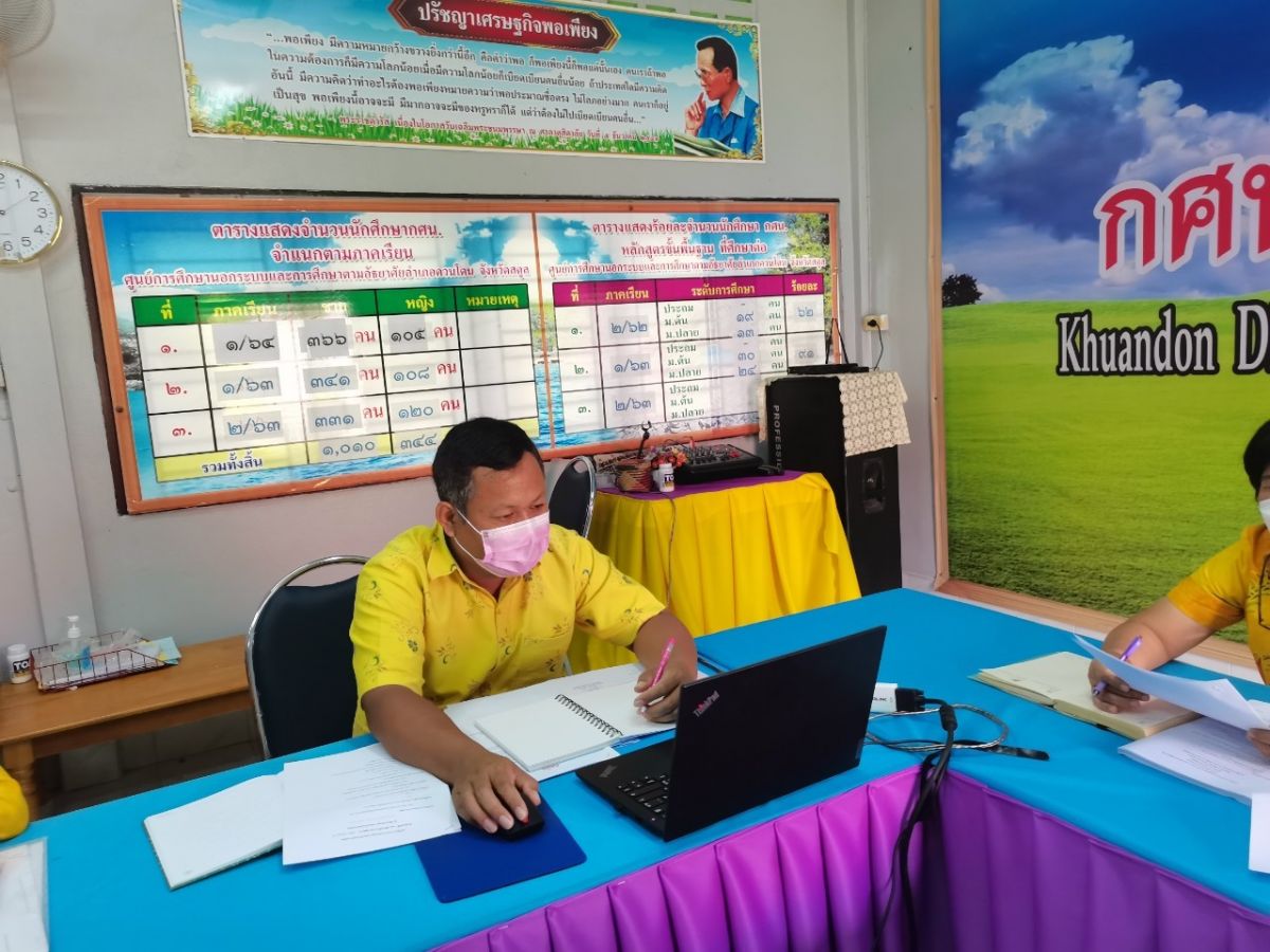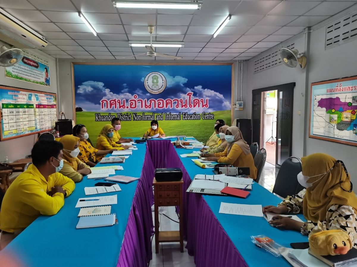 นายเกษมศักดิ์ ไชยพิทักษ์ บรรณารักษ์ ห้องสมุดประชาขนอำเภอควนโดน พร้อมด้วยด้วยบุคลกร กศน.อำเภอควนโดน เข้าร่วมประชุมบุคลากรในสังกัดสถานศึกษาประจำสัปดาห์ เพื่อร่วมวางแผนการและติดตามการดำเนินงาน การจัดนิทรรศการเด่น ประจำปีงบประมาณ 2564 การจัดกิจกรรมลูกเสือจิตอาสา และการจัดทำแผนปี 2565 ในการดำเนินการประชุมครั้งนี้เป็นไปตามมาตรการป้องกันการแพร่ระบาดของโรคติดเชื้อไวรัสโคโรนา 2019 อย่างเคร่งครัด ณ ห้องประชุม กศน.อำเภอควนโดน จังหวัดสตูล โดยมีนางเนาวรัตน์ ศรีหมั่น ครู ชำนาญการ รักษาการในตำแหน่ง ผู้อำนวยการ กศน.อำเภอควนโดน จังหวัดสตูล เป็นประธานและดำเนินการประชุม