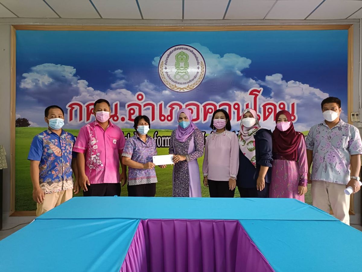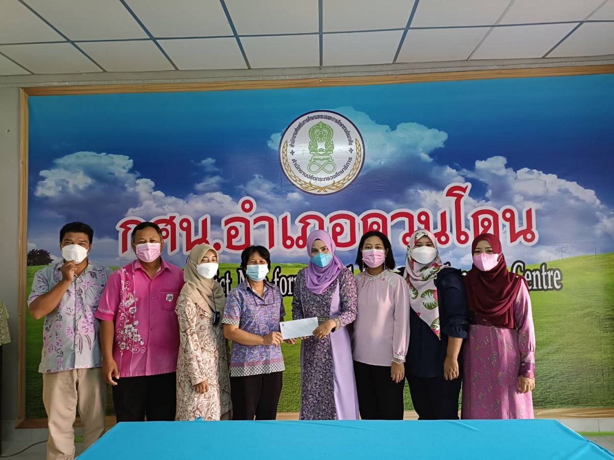 นางเนาวรัตน์ ศรีหมั่น ครูชำนาญการ รักษาการในตำแหน่ง ผู้อำนวยการ กศน.อำเภอควนโดน จังหวัดสตูล มอบสินน้ำใจ ให้กับนางสาวรมณีย์ ทิ้งปากถ้ำ ครูอาสาสมัครฯ กศน.ตำบลย่านซื่อ ซึ่งเป็นผู้ติดเชื้อไวรัสโคโรนา 2019 (โควิด 19) ซึ่งเข้ารับการรักษาตั้งแต่วันที่ 19 – 29 พฤศจิกายน 2564 เพื่อเป็นการรับขวัญและให้กำลังใจ ณ ห้องประชุม กศน.อำเภอควนโดน จังหวัดสตูล