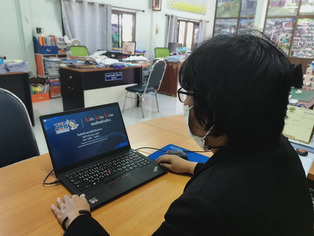 นางเนาวรัตน์ ศรีหมั่น ครูชำนาญการ รักษาการในตำแหน่ง ผู้อำนวยการ กศน.อำเภอควนโดน จังหวัดสตูล ร่วมรับชมประกาศเจตนารมณ์ เนื่องในงานวันต่อต้านคอร์รัปชันสากล (ประเทศไทย) โดยพลเอกประยุทธ์ จันทร์โอชา นายกรัฐมนตรี ผ่าน Facebook Live ของสำนักงาน ป.ป.ช ภายใต้แนวคิด “Zero Tolerance คนไทยไม่ทนต่อการทุจริต” รับชม ณ กศน.อำเภอควนโดน จังหวัดสตูล