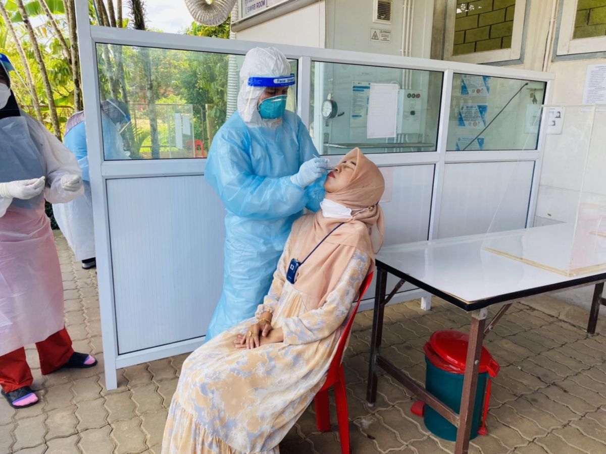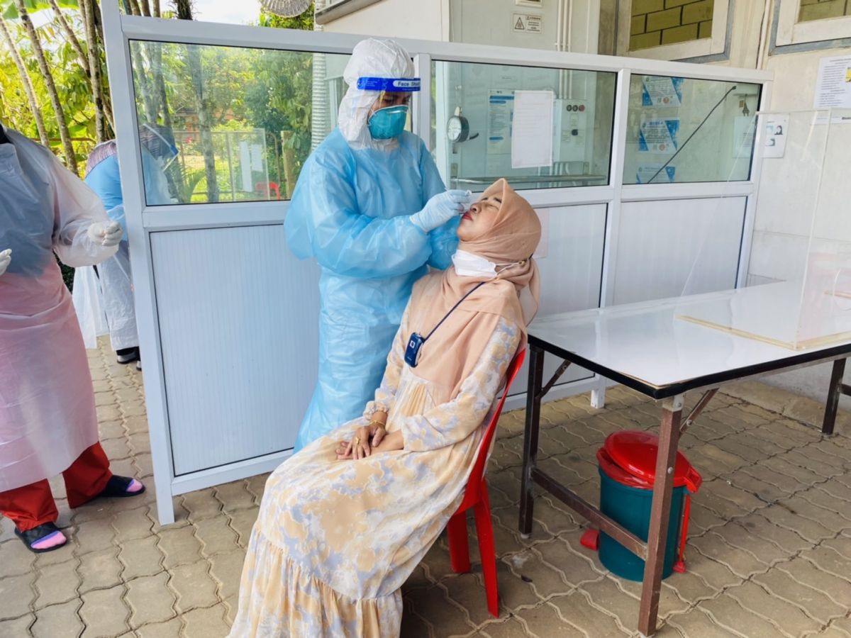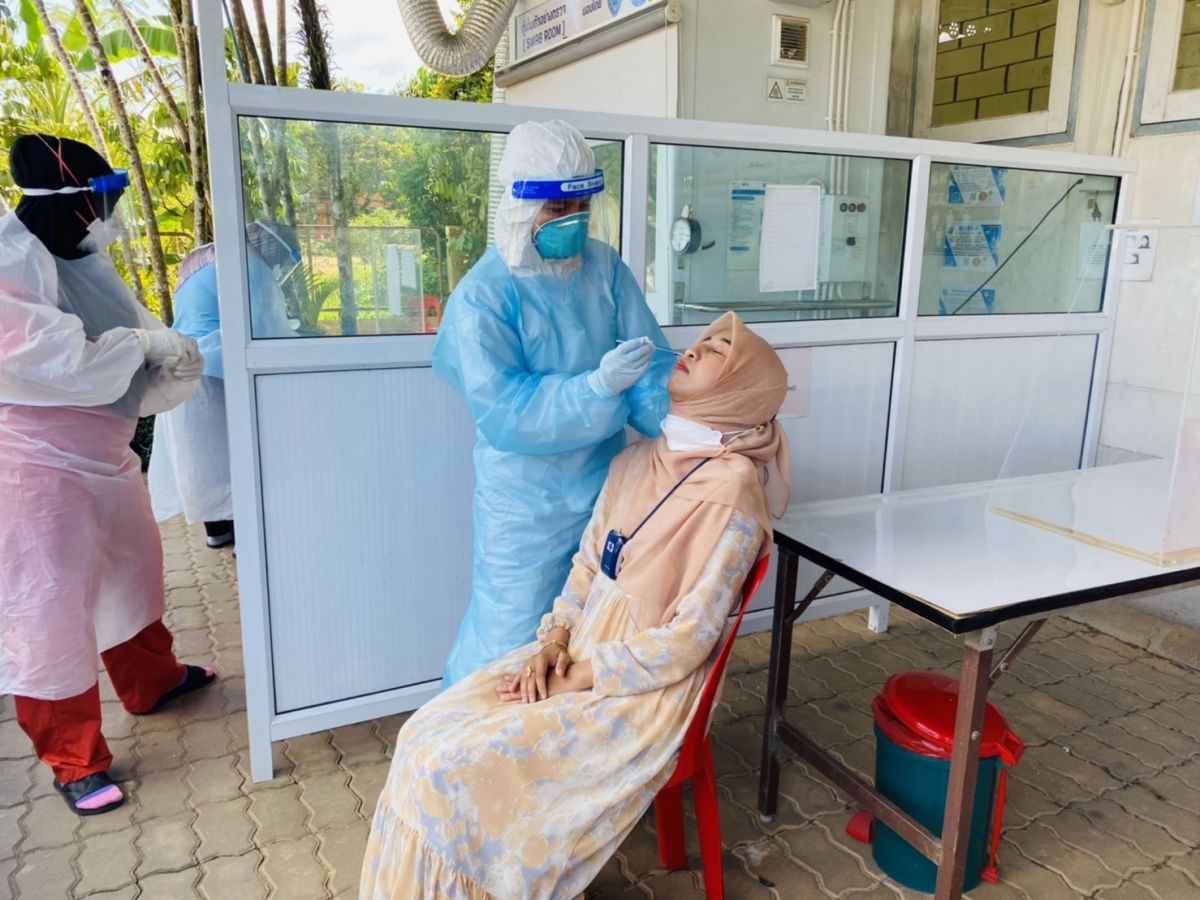 นางสาวอาฟีฟา อาลีมิง ครูอาสาสมัครฯ ประจำสถาบันศึกษาปอเนาะ ได้รับมอบหมาย จากนางเนาวรัตน์ ศรีหมั่น ครู ชำนาญการ รักษาการในตำแหน่ง ผู้อำนวยการ กศน.อำเภอควนโดน ให้ดำเนินการตรวจโควิด-19 ด้วยชุดตรวจโควิด-19 แบบเร่งด่วน Antigen Test Kit (ATK) เพื่อแสดงความรับผิดชอบและหน้าที่พึงกระทำของทุกท่านในการให้ความร่วมมือเพื่อคลี่คลายสถานการณ์แพร่ระบาดไม่ให้เลวร้ายยิ่งขึ้น ถือเป็นการแสดงความรับผิดชอบต่อสังคมและส่วนรวม ณ โรงพยาบาลควนโดน จังหวัดสตูล