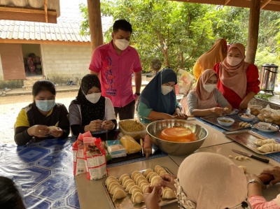 นายชูชัย ใบเอ็ม ครูกศน.ตำบลเขาขาว เปิดกลุ่มการจัดการศึกษาต่อเนื่องรูปแบบกลุ่มสนใจ หลักสูตรการทำกะหรี่ปั๊บสมุนไพร